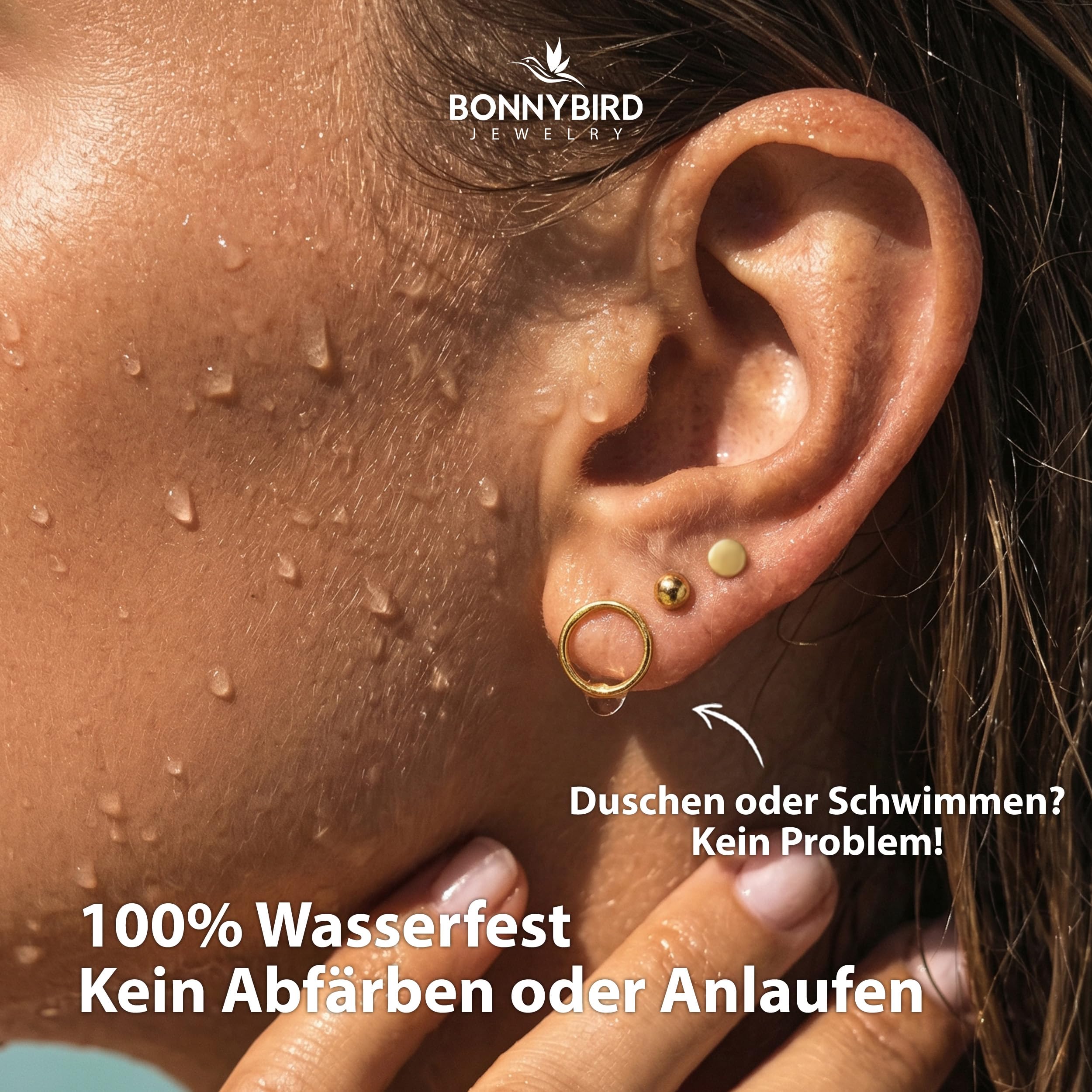 BONNYBIRD® Wasserfeste Edelstahl Ohrringe Damen in Silber, Gold & Roségold, Hypoallergen dank medizinischem Chirurgenstahl, Extra Leicht
