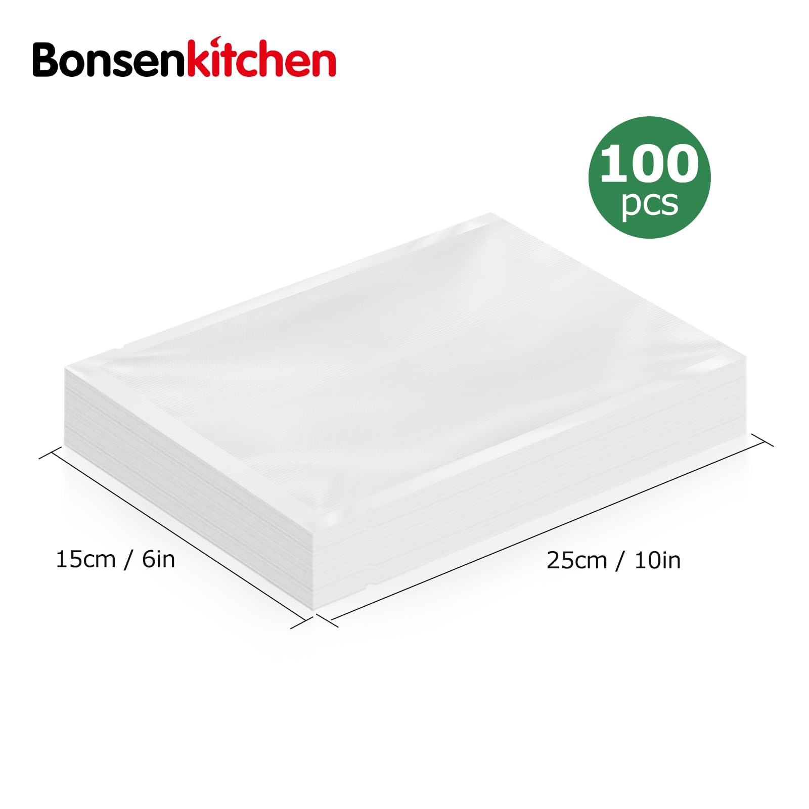 Bonsenkitchen Vakuumbeutel BPA-frei, Lebensmittelechter Vakuumverbeutel, Multifunktionale Frischhalte und Aufbewahrung, Geeignet für Fruits, Grains and Vegetables, 15cm x 25cm, 100 Stück