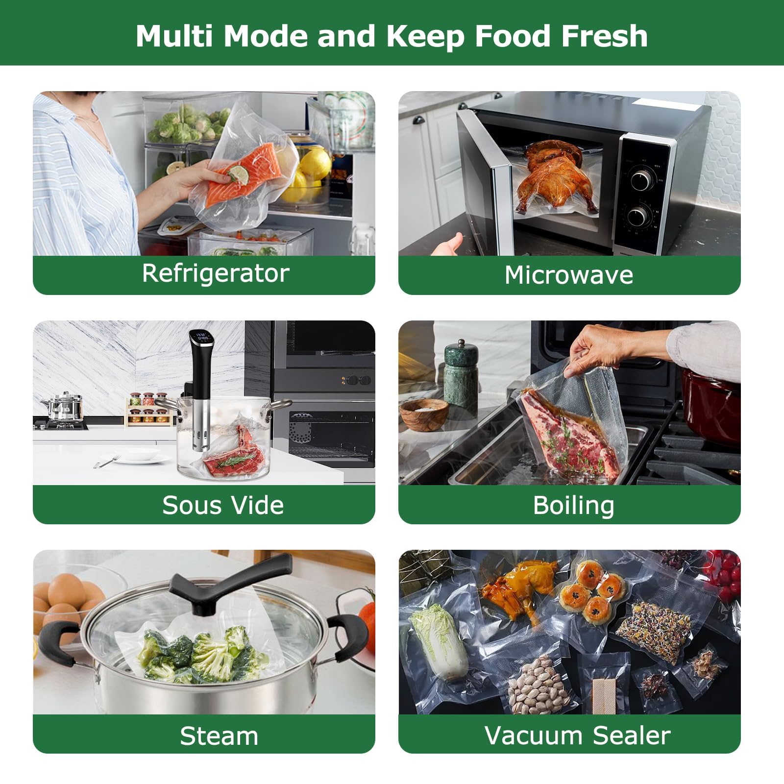 Bonsenkitchen Vakuumbeutel BPA-free food-grade vacuum sealed bag-multifunctional fresh-keeping storage solution, suitable for meat, fruits, grains and vegetables, improving kitchen finishing efficiency 15cm x 25cm, 100 Stück