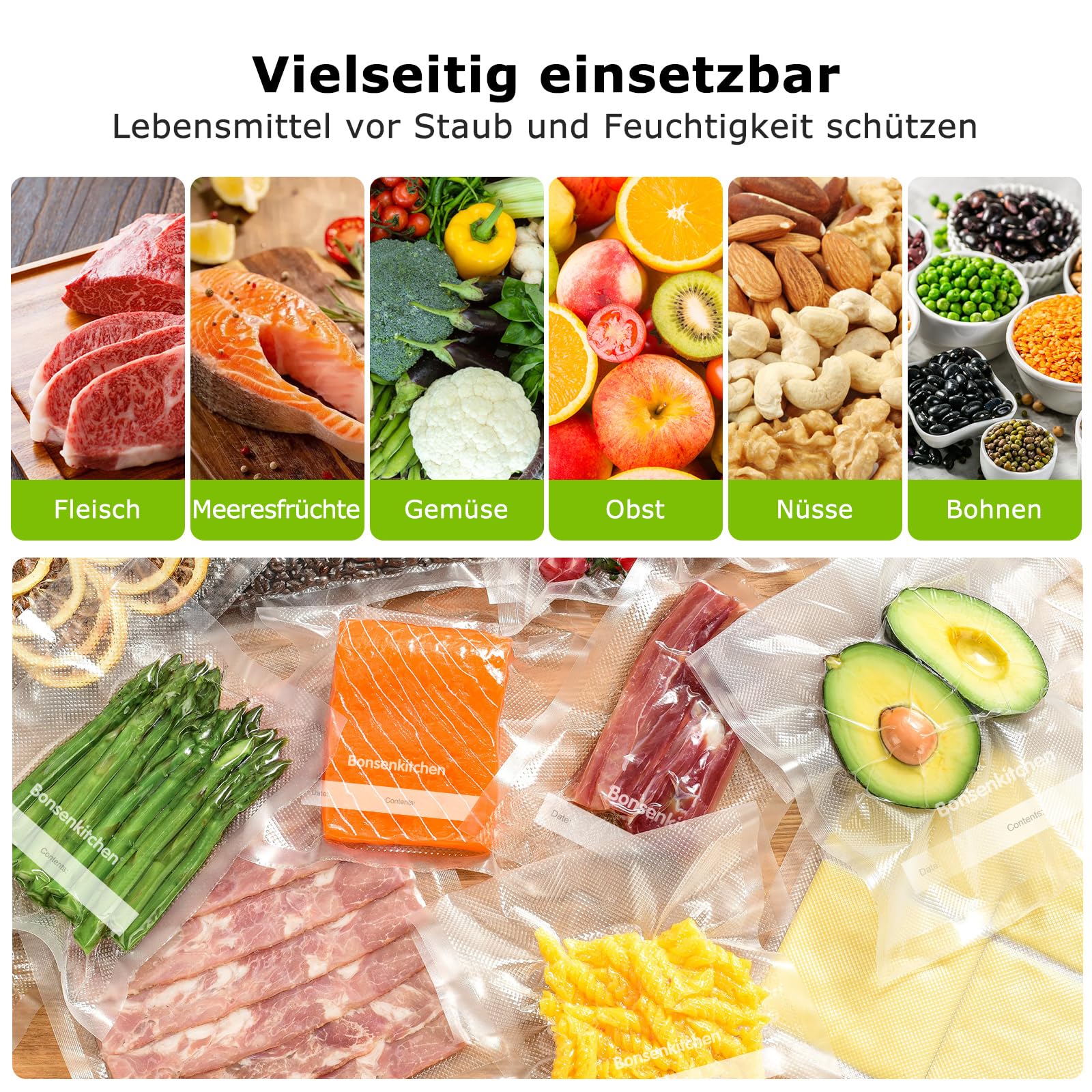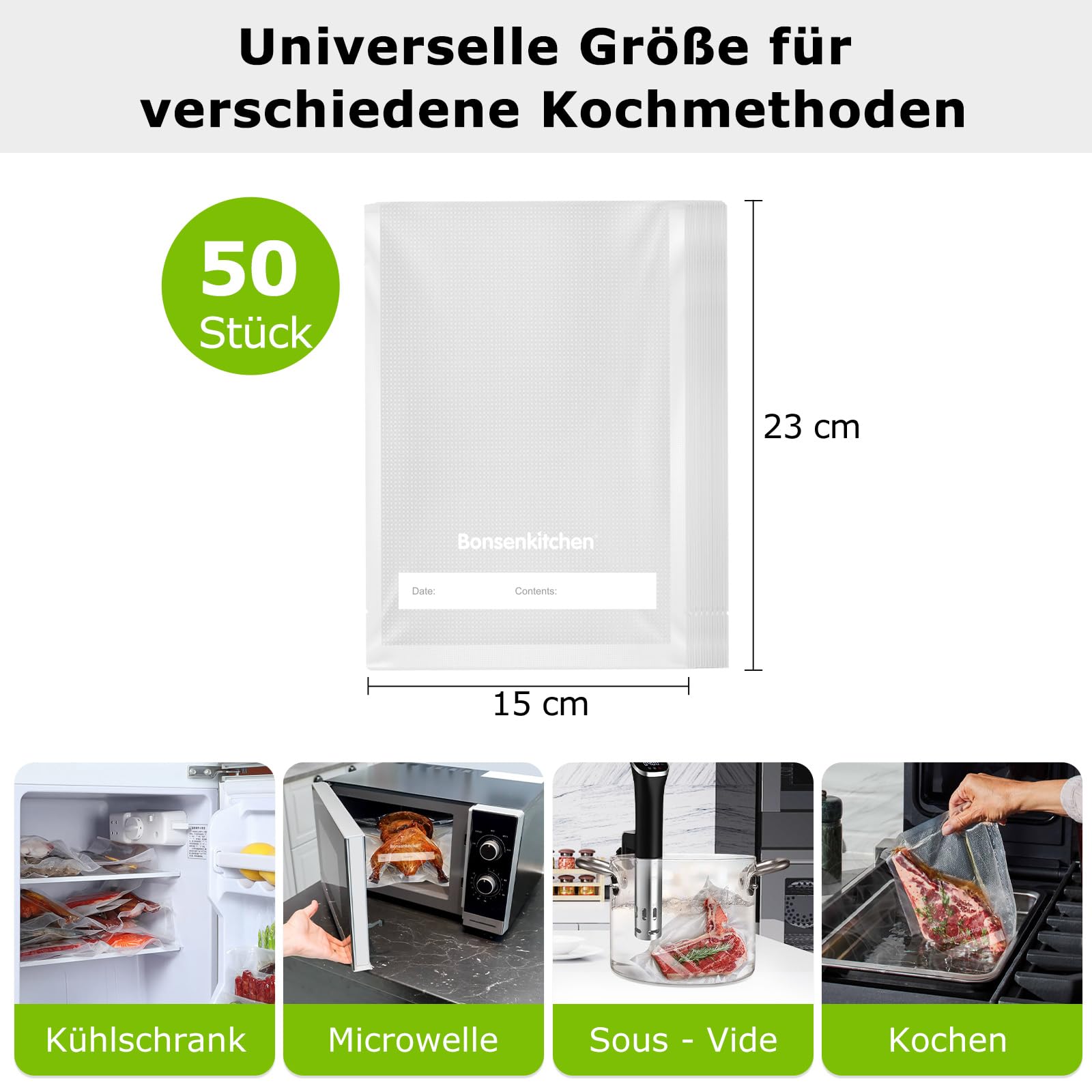 Bonsenkitchen Vakuumierbeutel 15x23cm, 50 Beutel Profi-Folienbeutel für alle Vakuumiergerät