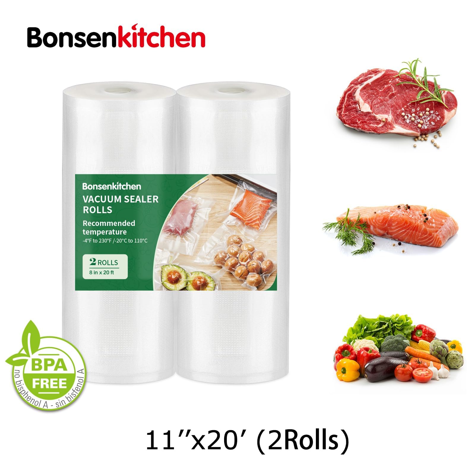 Bonsenkitchen Vakuumrollen, BPA-Frei, Thickened Grocery Beutel für die Konservierung von Lebensmitteln, Kochfest & Gefriergeeignet, BPA-frei, Ideal für Sous Vide, 2 Rollen 20cm x 600cm, TB05