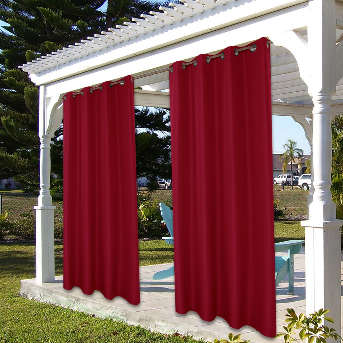 BONZER Wasserdichte Outdoor-Vorhänge für Terrasse, Veranda, Pergola, Sonnenlicht, Sichtschutz, Ösen, Innenvorhang, für Schlafzimmer, Wohnzimmer, 1 Stück, 137 x 308 cm, Rot