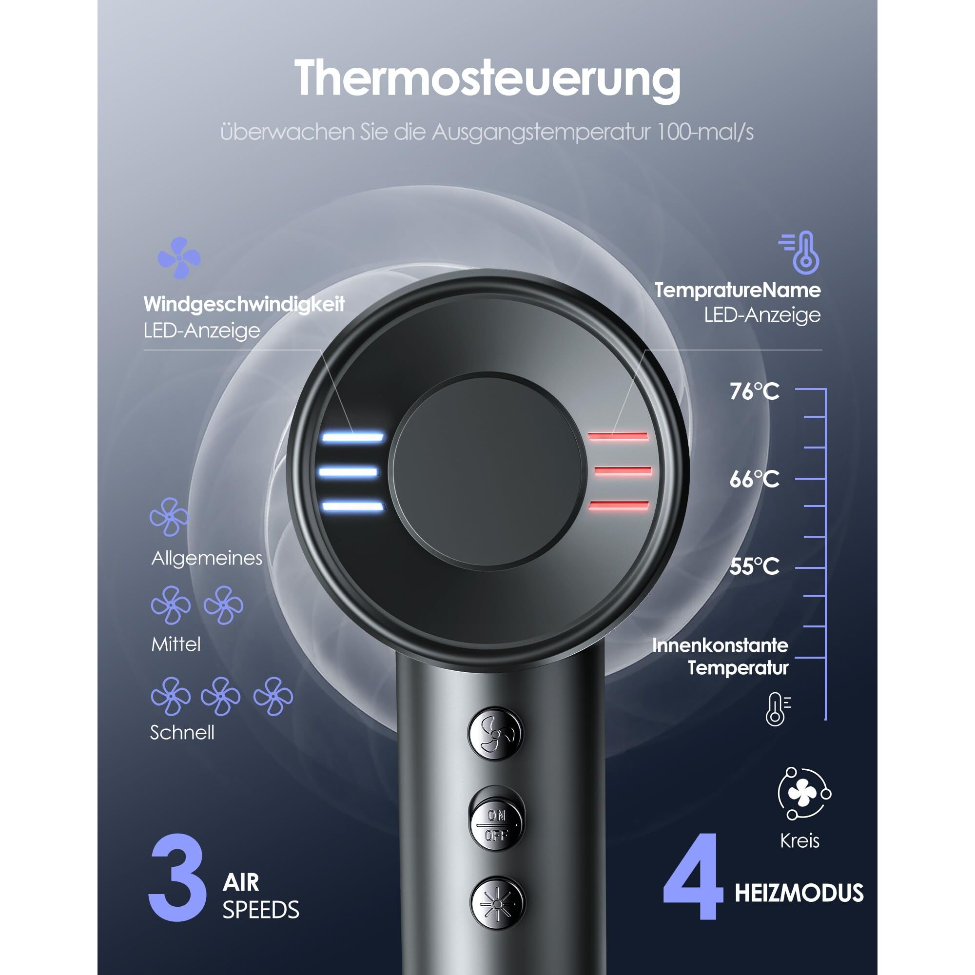 Bopcal Ionen Föhn,160000 U/min High-Speed Haartrockner, 500 Millionen Ionen Fön mit Diffusor Verwendet für Schnelles Trocknen, Professioneller Reisehaartrockner für Hause, Salon, Geschenk, 12 Modi
