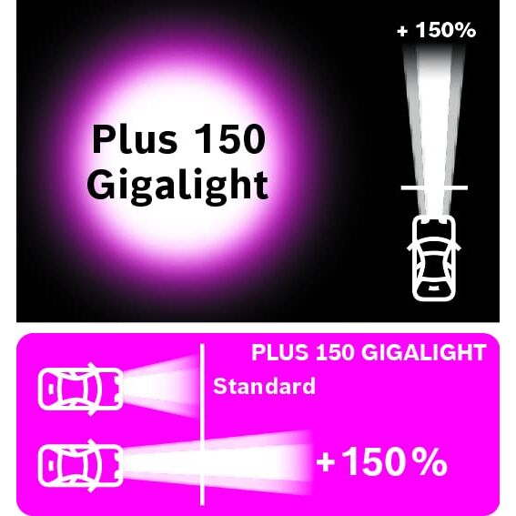 Bosch H7 Plus 150 Gigalight Halogen-Glühlampe für Auto-Scheinwerfer, 12 V 55 W, 150 % mehr Licht - Lampensockel Typ PX26d - 1 Ersatz-Scheinwerferlampe