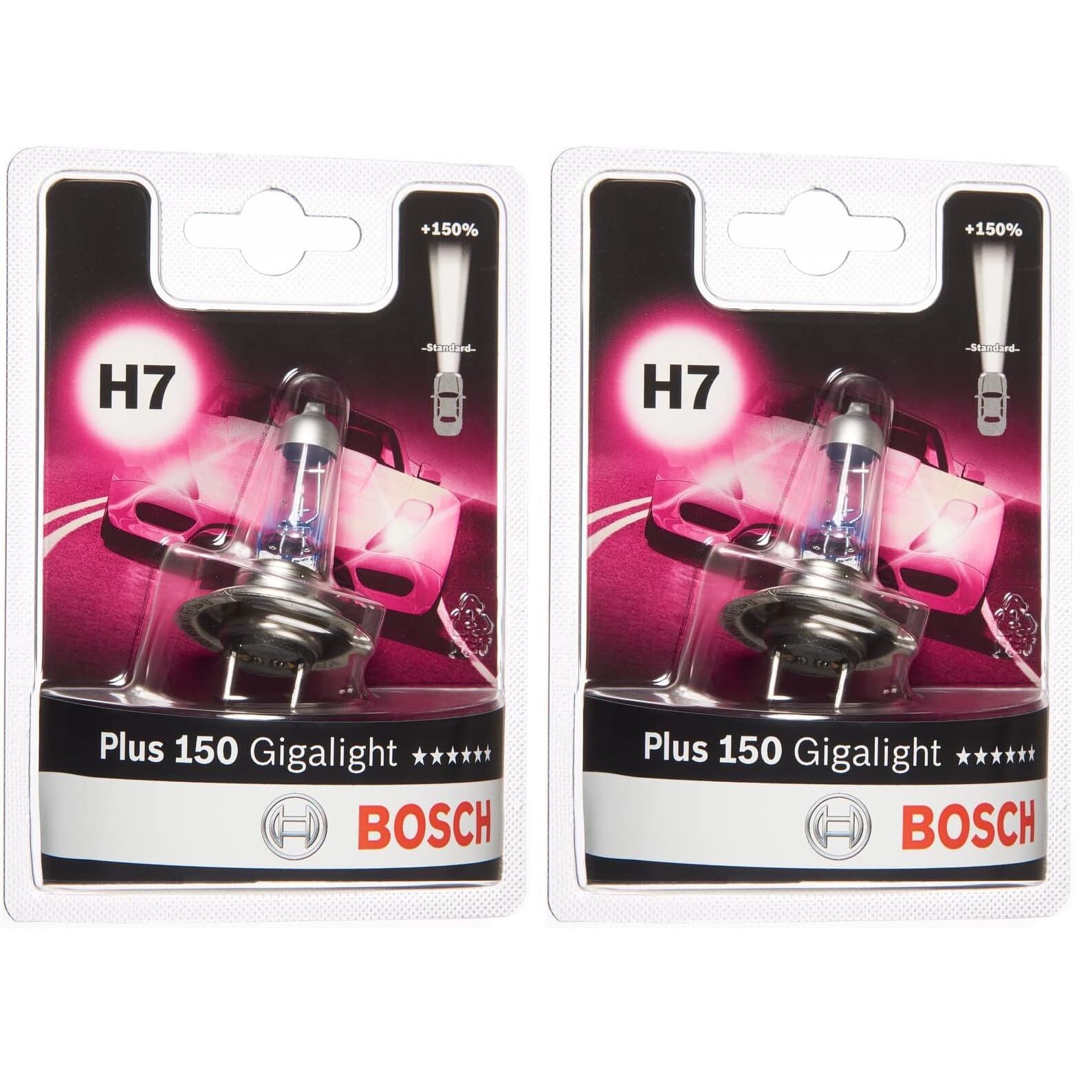 Bosch H7 Plus 150 Gigalight Halogen-Glühlampe für Auto-Scheinwerfer, 12 V 55 W, 150% mehr Licht - Lampensockel Typ PX26d - 1 Ersatz-Scheinwerferlampe (Packung mit 2)