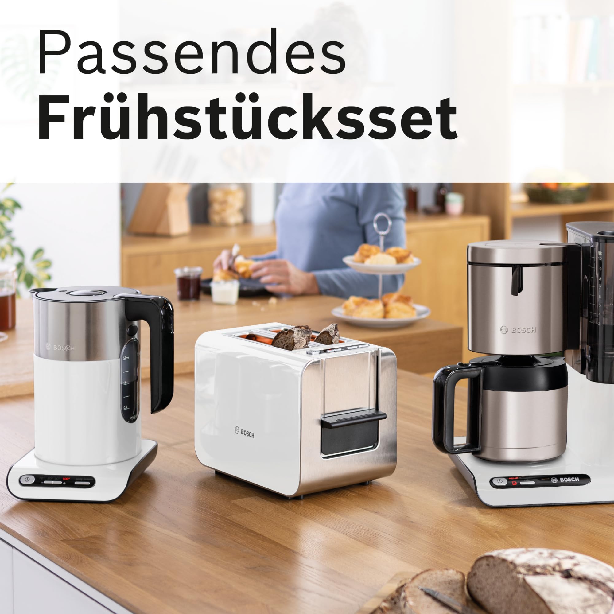 Die ideale Wahl für Designliebhaber und Teegeniesser. Geniessen Sie ein vollmundiges Teearoma mit diesem schnurlosen Wasserkocher von Bosch in elegantem Design.