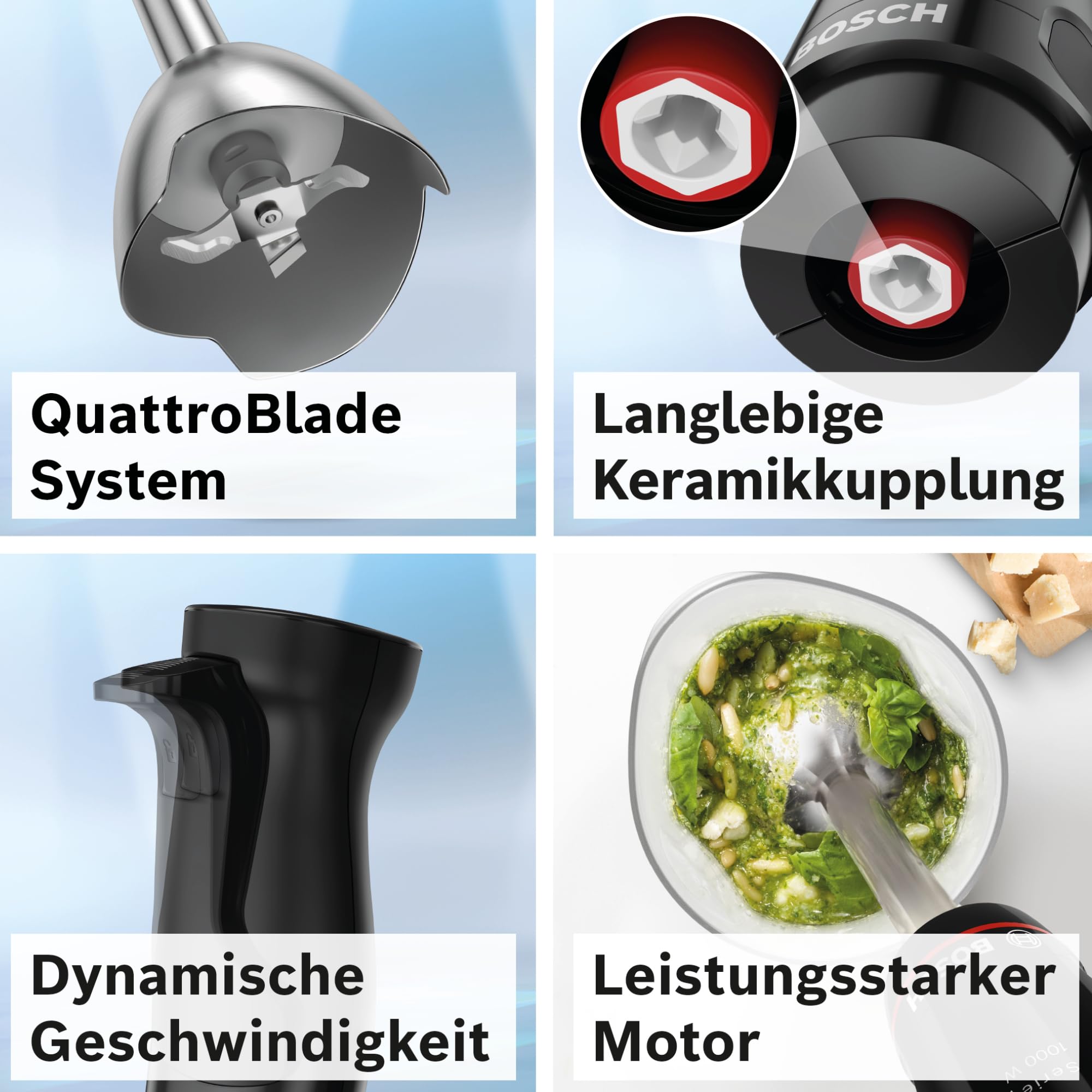 Bosch Stabmixer ErgoMaster Serie 4, mit Mixbecher, Edelstahl-Klingen, langlebig, verschleissfreie Keramik-Kupplung, Einschaltsperre, 1000 W, schwarz, MSM4B610