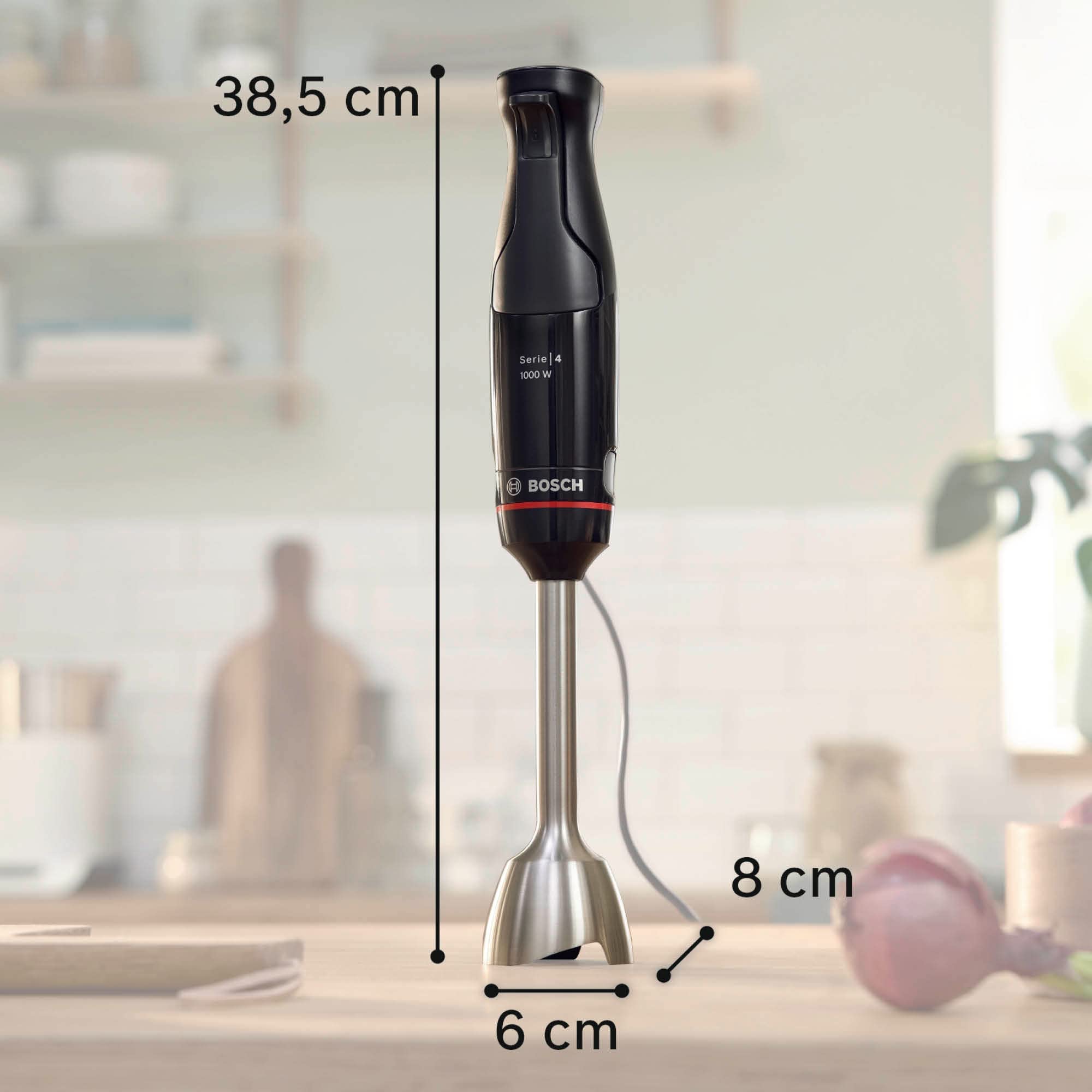 Bosch Stabmixer ErgoMaster Serie 4, mit Zerkleinerer, Mix-/Messbecher, Edelstahl-Klingen, langlebig, verschleissfreie Keramik-Kupplung, 1000 Watt, schwarz, MSM4B620