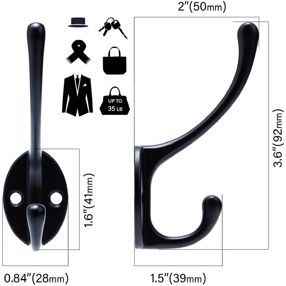 Bosdontek Vintage Kleiderhaken 10 stück Wandhaken Handtuchhaken Metall Huthaken Mantelhaken Doppelt Garderobenhaken Ideal für Bad Küche Büro Toilette Einkaufszentrum (Schwarz)
