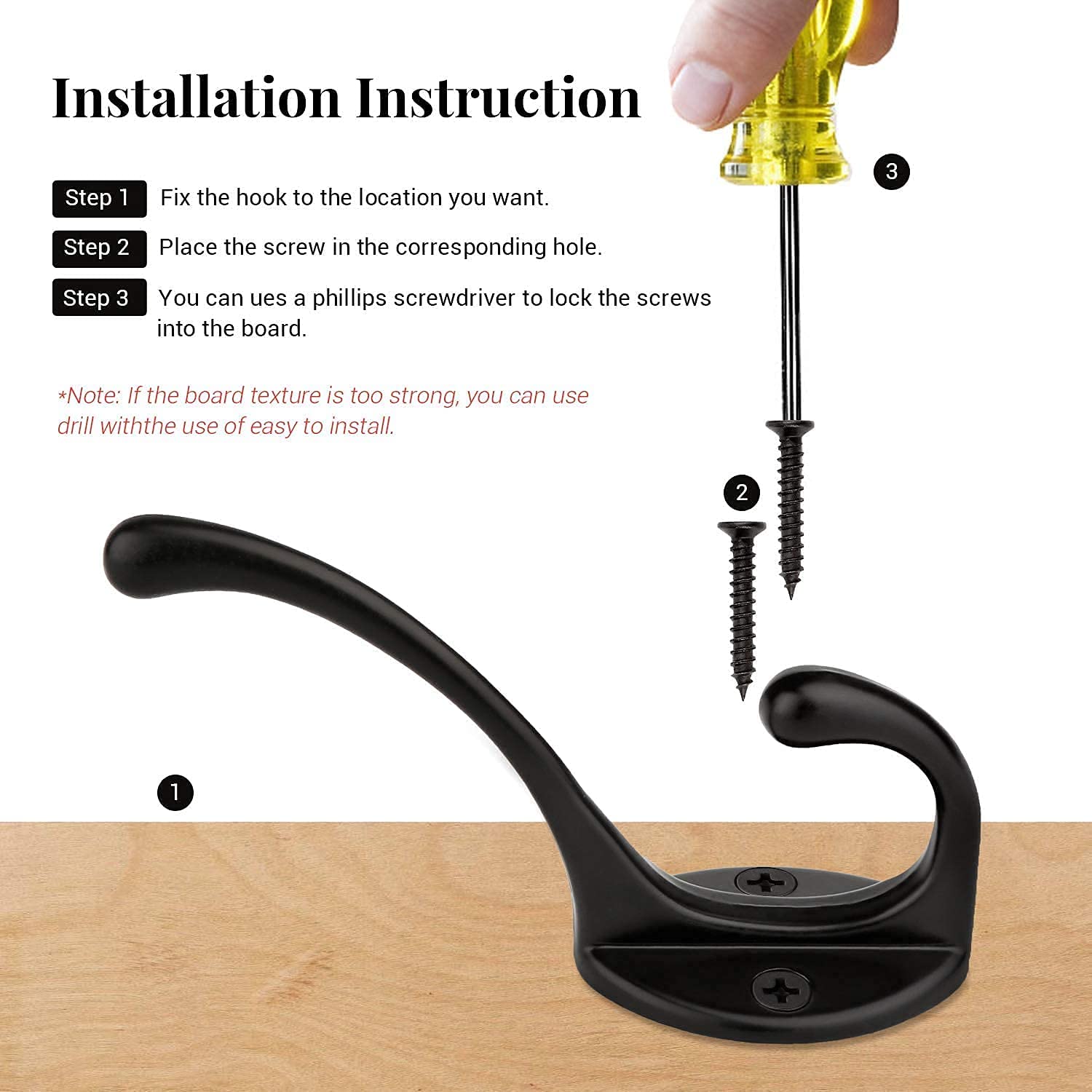✓ Sehr einfach in Ihrem Haus zu installieren, da es mit 2 Schrauben geliefert wird, die Massivholz- oder Holzbolzen empfehlen.