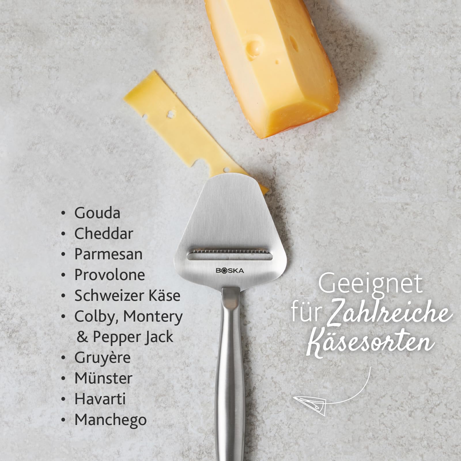 BOSKA Käsehobel Copenhagen/käseschneider für alle Käsesorten/multifunktional/Edelstahl/Silber/Spülmaschinenfest