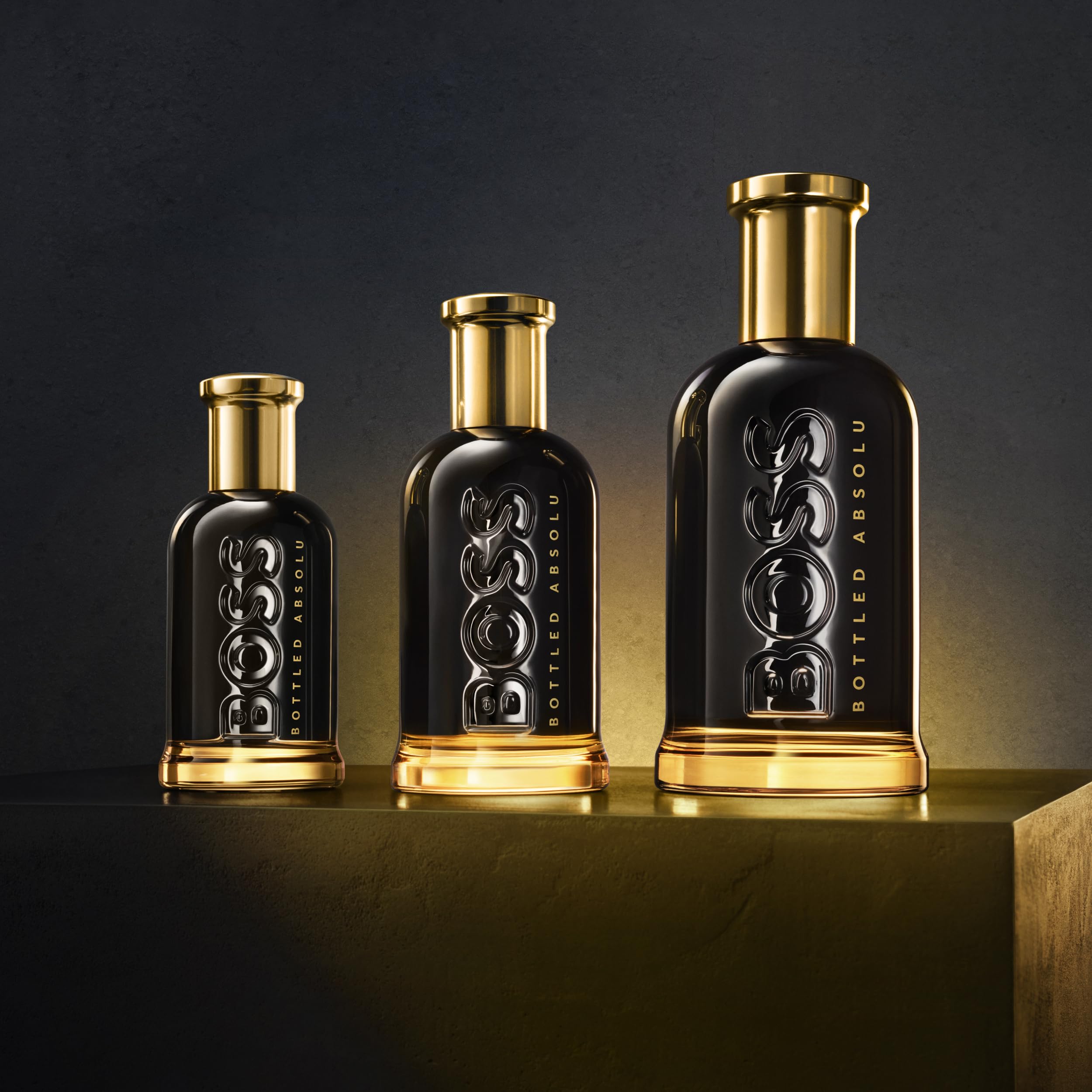 BOSS Bottled Absolu, ein markantes Parfum Intense mit einem unwiderstehlichen gerösteten Signature-Duft, lässt seinen Träger ein Höchstmass an Raffinesse verströmen. Dieser moderne, unvergessliche, charakteristische Duft ist eine Hommage an die Kraft des BOSS Manns, der jeder Entscheidung, jeder Herausforderung und jedem Erfolg seinen ganz persönlichen Touch verleiht. Als drittes Meisterwerk in einer Trilogie der Intensität von BOSS Bottled betört dieser holzig-ledrige Duft augenblicklich die Sinne. Es handelt sich um ein faszinierendes BOSS Parfum, das mit der bisher höchsten Konzentration der Duftfamilie formuliert wurde und mit absoluter Tiefe auf seine typische holzige Signatur aufbaut – die Essenz eines BOSS. Von Annick Menardo in Zusammenarbeit mit Suzy Le Helley komponiert, öffnet sich BOSS Bottled Absolu geschmeidig mit einem strukturierten Lederakkord, der sich durch eine geröstete Facette auszeichnet, wobei eine belebende Weihrauchessenz für Harmonie sorgt. In der Herznote dieses BOSS Parfums für Männer unterstreichen umhüllende Patschuli-Essenz und Myrrhen-Absolue die Kraft und die Pracht dieses raffinierten Dufts. Warme Zedernholz- und fruchtige Davana-Essenzen in der Basisnote hinterlassen einen langanhaltenden, edlen Nachhall. Der einzigartige BOSS Bottled Parfumflakon besticht durch seinen warmen, leuchtenden bernsteinfarbenen Sockel – eine Anspielung auf den luxuriösen, verführerischen Duft im Inneren. Eine strahlende Zweifachlackierung und eine glänzende goldene Kappe vervollständigen die edle Aufmachung dieses holzigen Parfums für Männer, das die positive Einstellung eines jeden BOSS unterstreicht.