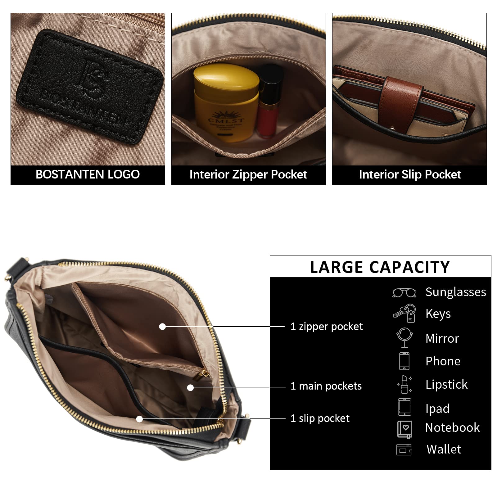 BOSTANTEN Handtasche Damen Mittelgross Umhängetasche Crossbody Bags Leder Schultertasche für Frauen Shopper Tasche mit Verstellbarem Farbigem Riemen