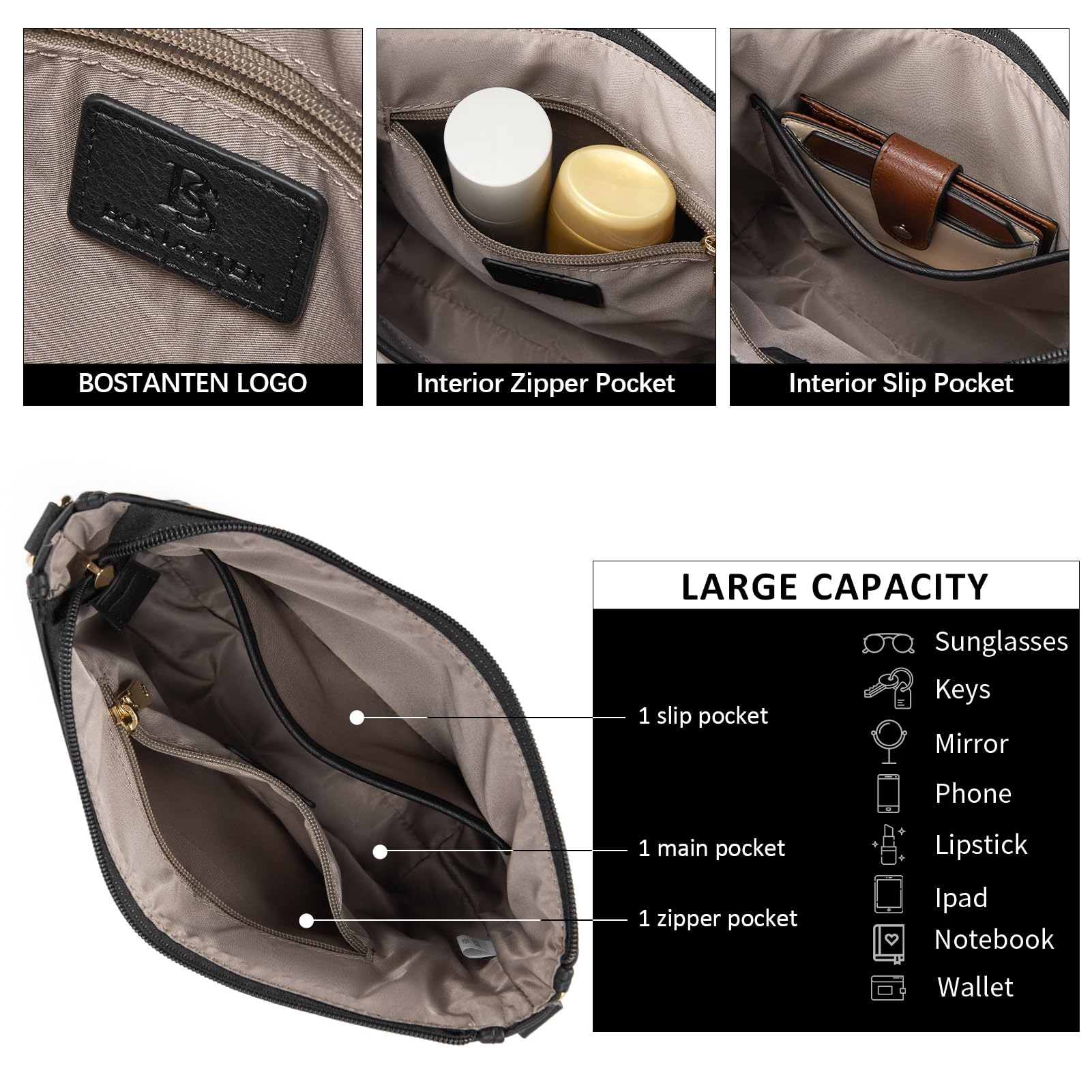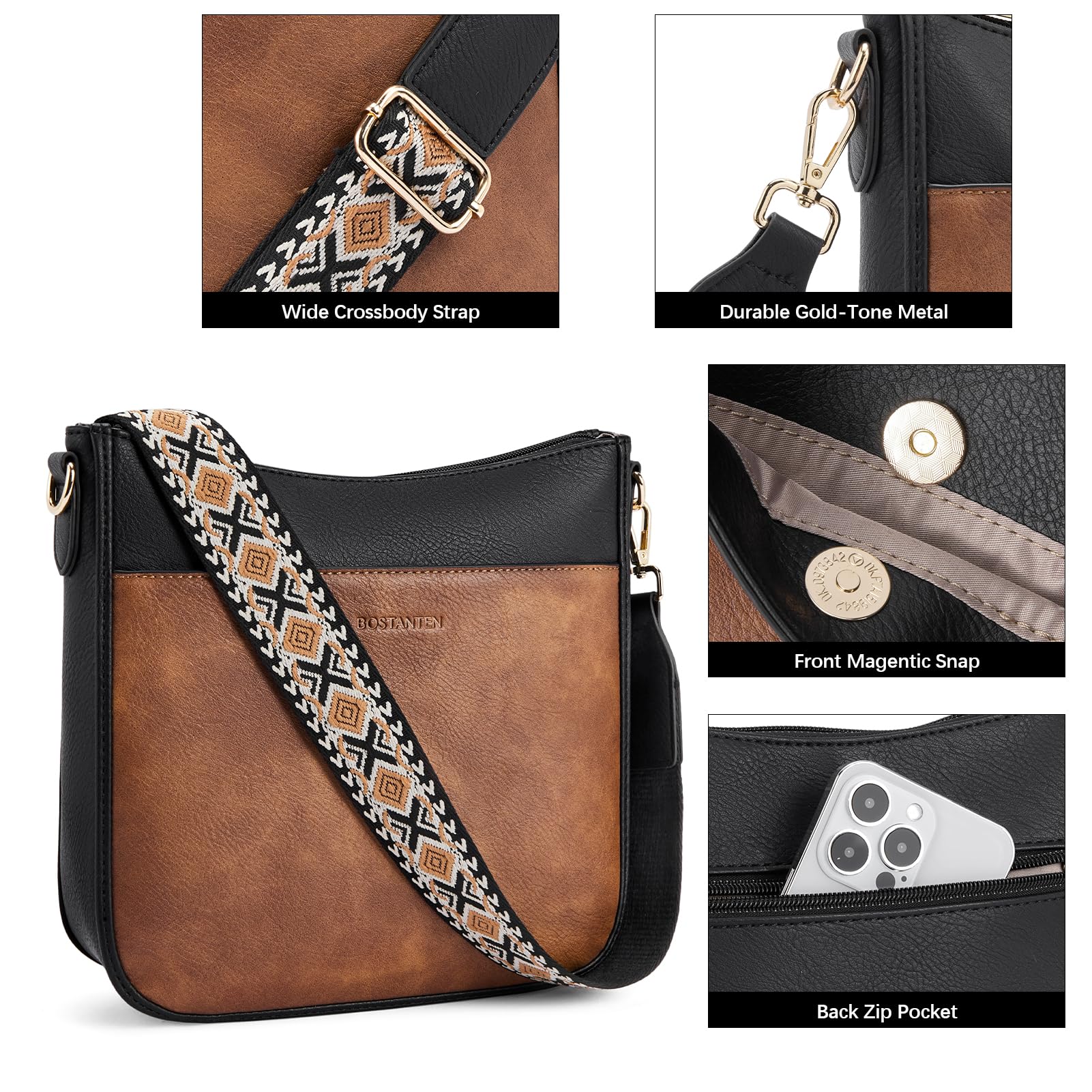 BOSTANTEN Handtasche Damen Mittelgross Umhängetasche Crossbody Bags Leder Schultertasche für Frauen Shopper Tasche mit Verstellbarem Farbigem Riemen