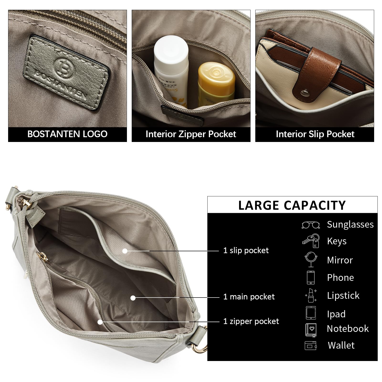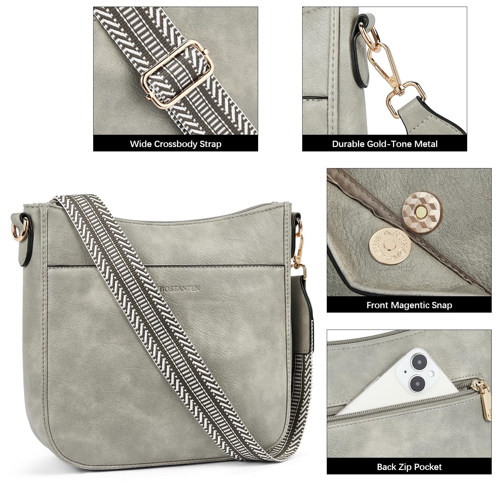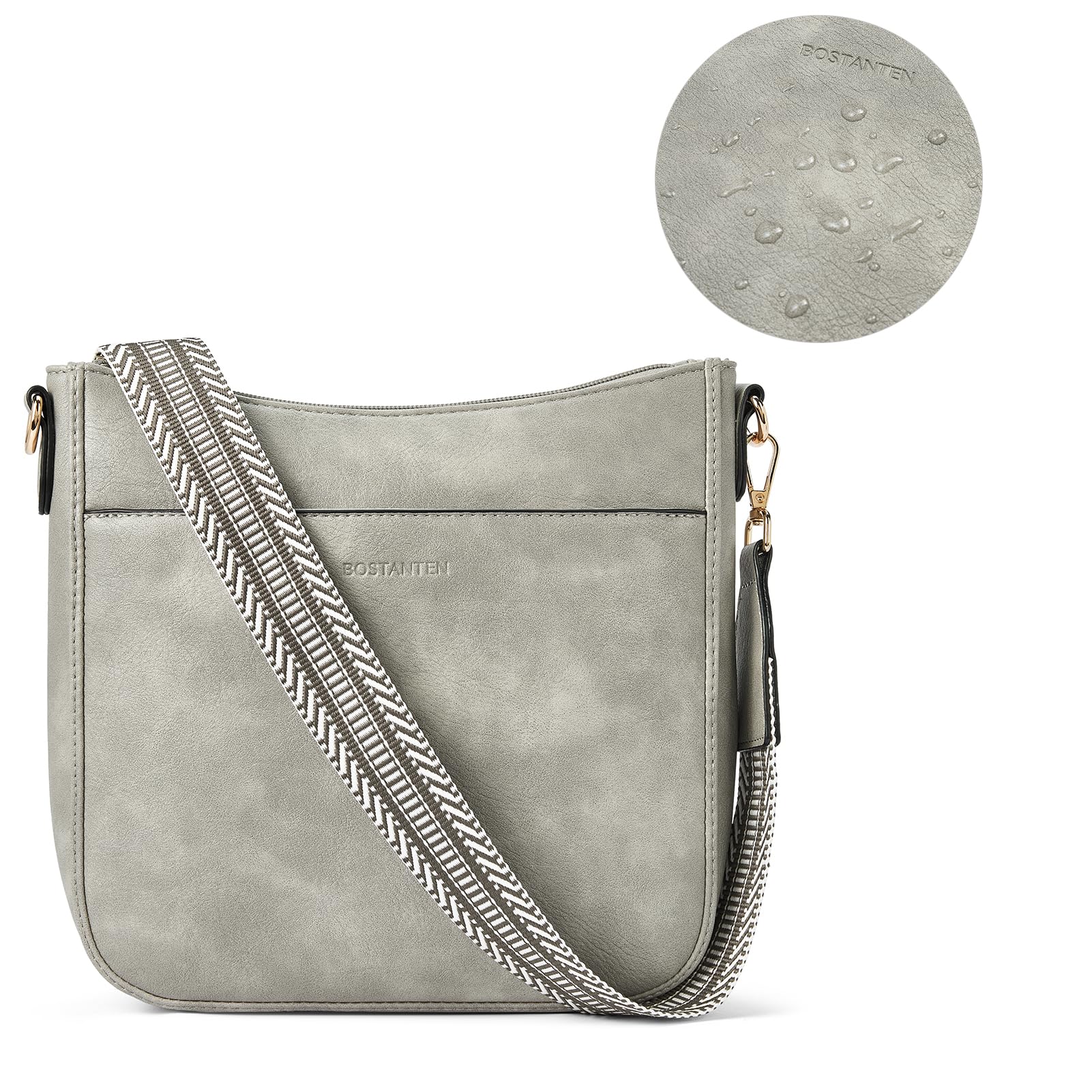 BOSTANTEN Handtasche Damen Mittelgross Umhängetasche Crossbody Bags Leder Schultertasche für Frauen Shopper Tasche mit Verstellbarem Farbigem Riemen