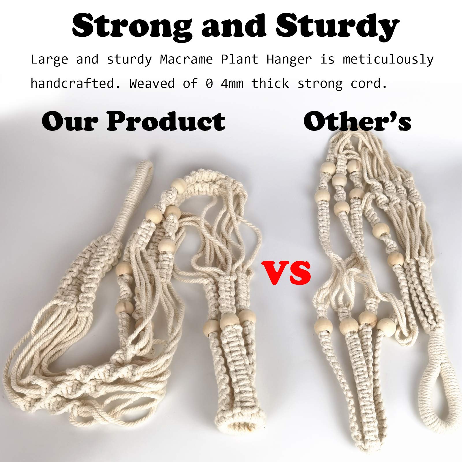Bouqlife 43 Zoll Makramee Pflanzenhänger Gross für 30,5 cm Topf Extra Lang Keine Quaste Baumwollseil Hängende Pflanzenhalter mit Deckenhaken Bohemian Home Decor