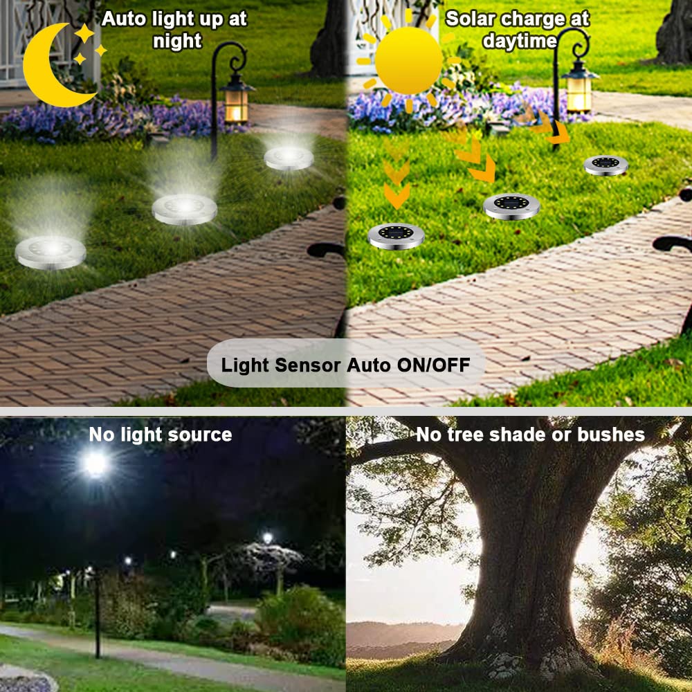 Bowfar 12 Stück Solar Bodenleuchten Aussen, Solarleuchten Garten mit 12 LEDs für Aussen, 3000K Kaltweiss Wasserdicht Led Solar Gartenleuchten, Solarlampen für Rasen Auffahrt Gehweg Patio Garden