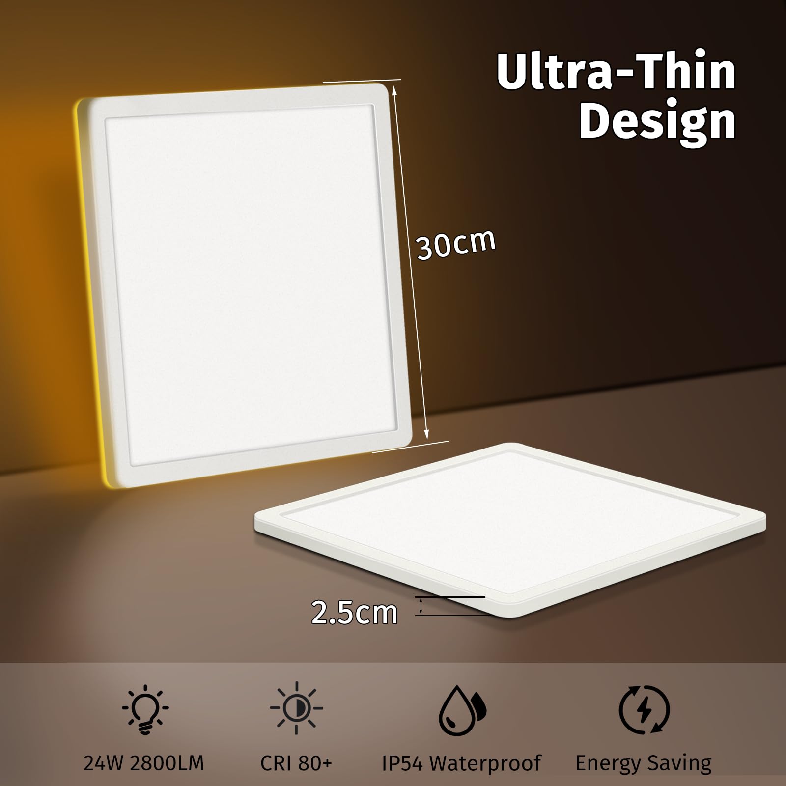 Bowfar LED Deckenleuchte Flach, 24W 2800LM Deckenlampe mit Fernbedienung Dimmbar 3000K-6500K, 1800K Nachtlicht Amber, Badezimmer Lampe für Wohnzimmer Küche Kinderzimmer Flur Schlafzimmer Ø29.5x2.5cm