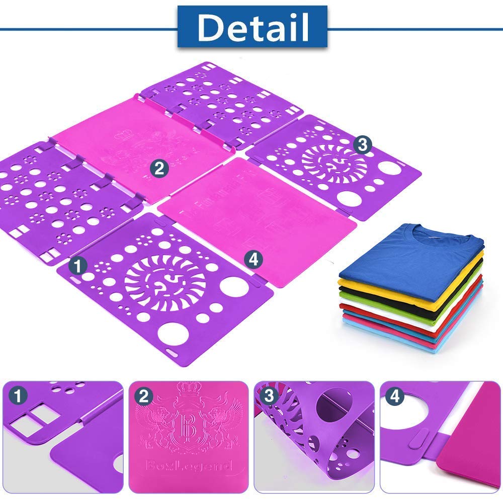 BoxLegend Faltbrett Für Kleidung Hemden Wäsche Erwachsen Faltbrett Kleidung T Shirt Faltbrett Wäsche Faltbrett Verstelltbar Hemdenfalter (Rosa & Lila)