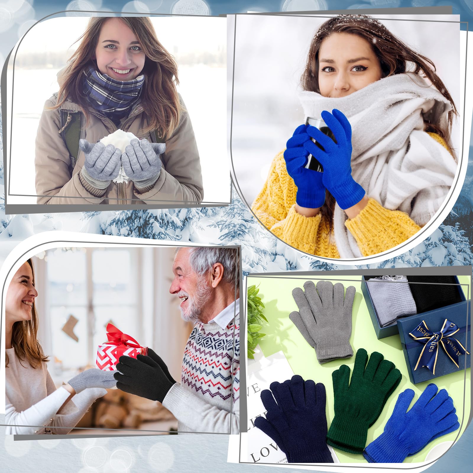 6 Paar Winter Vollfinger Strickhandschuhe