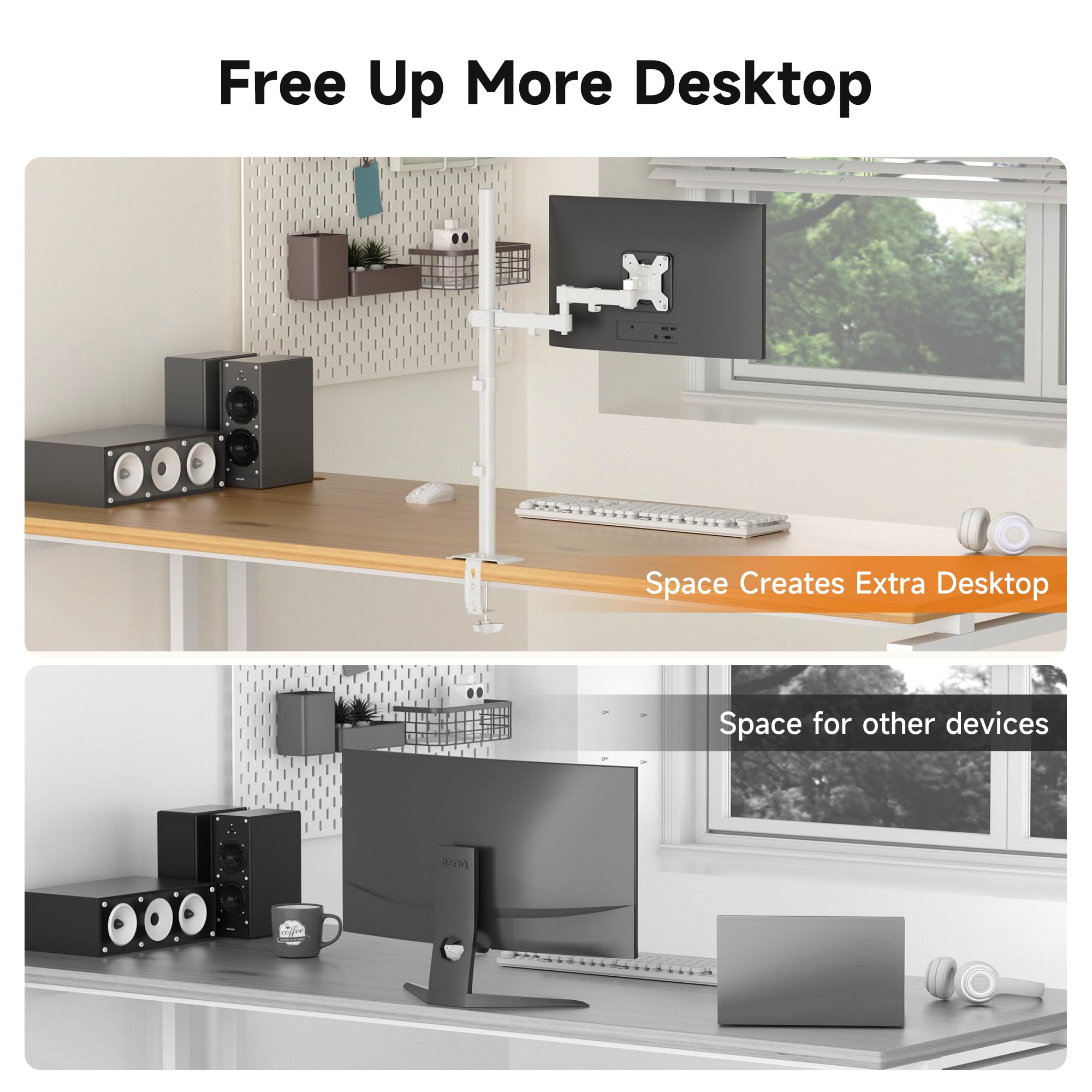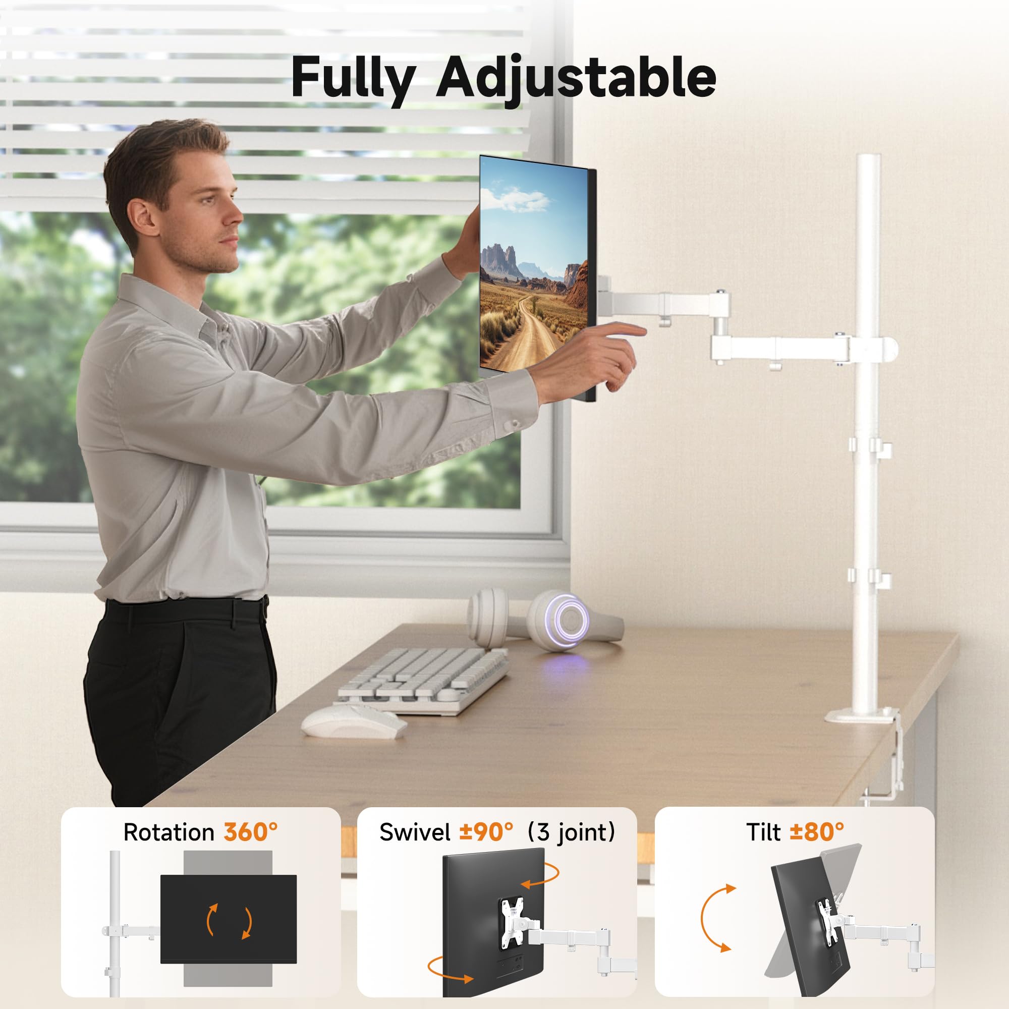 Bracwiser einzelnen Voll einstellbare Stehhöhe Monitorarm Standhalterung 800 mm hoch für Monitor Computerbildschirm 13 15 17 19 20 22 23 24 26 27 30 32 Zoll VESA 75 100,Weiss, MD7821W