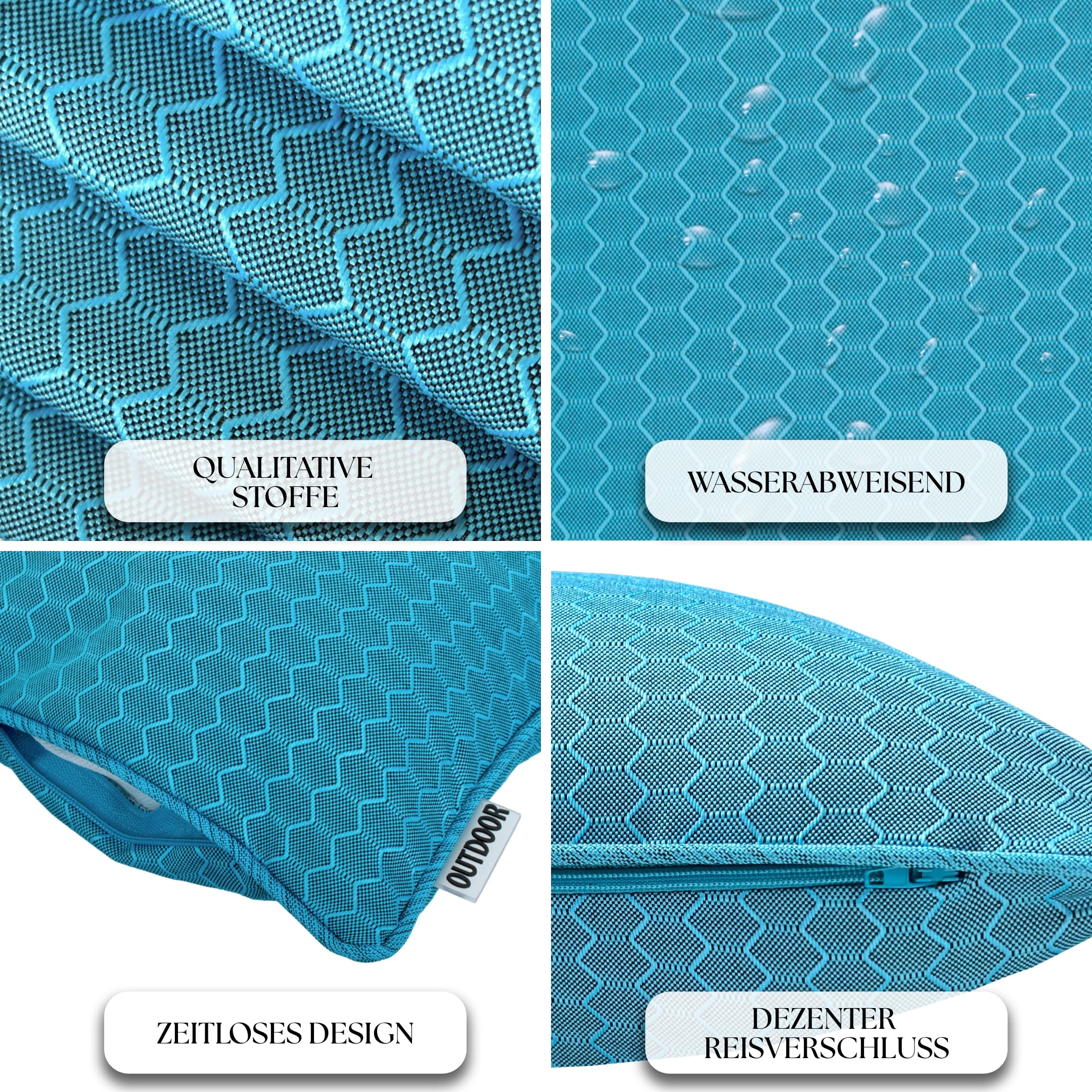 Brandsseller 4er Set Outdoor Kissen 45 x 45 cm – Wetterfeste Zierkissen mit Paspel in Wabenstruktur – Wasserabweisende Gartenkissen & Dekokissen für draussen – Sofakissen für Balkon & Terrasse - Aqua