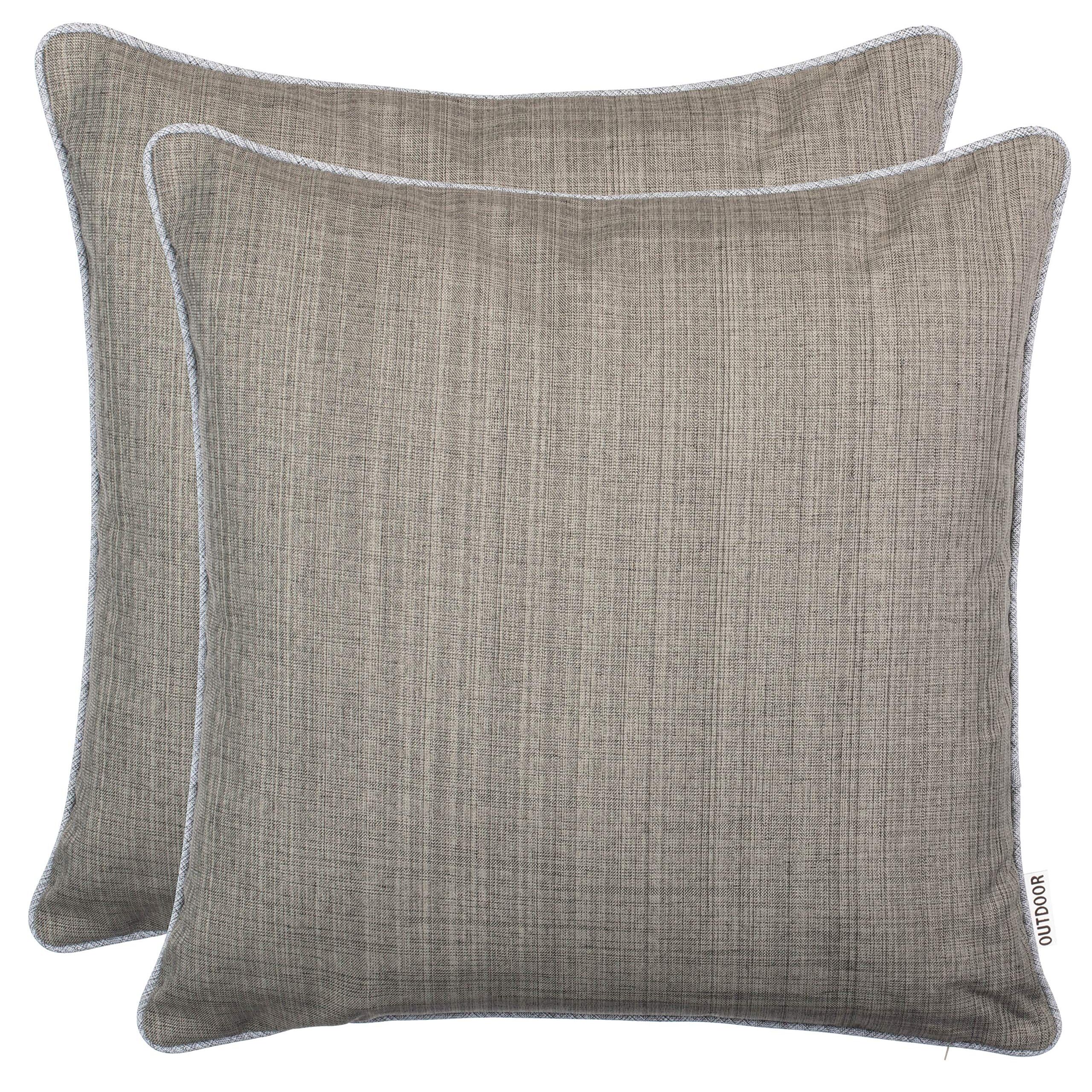 Brandsseller 2er Set Outdoor Kissen 45x45 cm – Wetterfeste Zierkissen mit Paspel in Leinenoptik – Wasserabweisende Gartenkissen & Dekokissen für draussen – Sofakissen für Balkon & Terrasse - Taupe