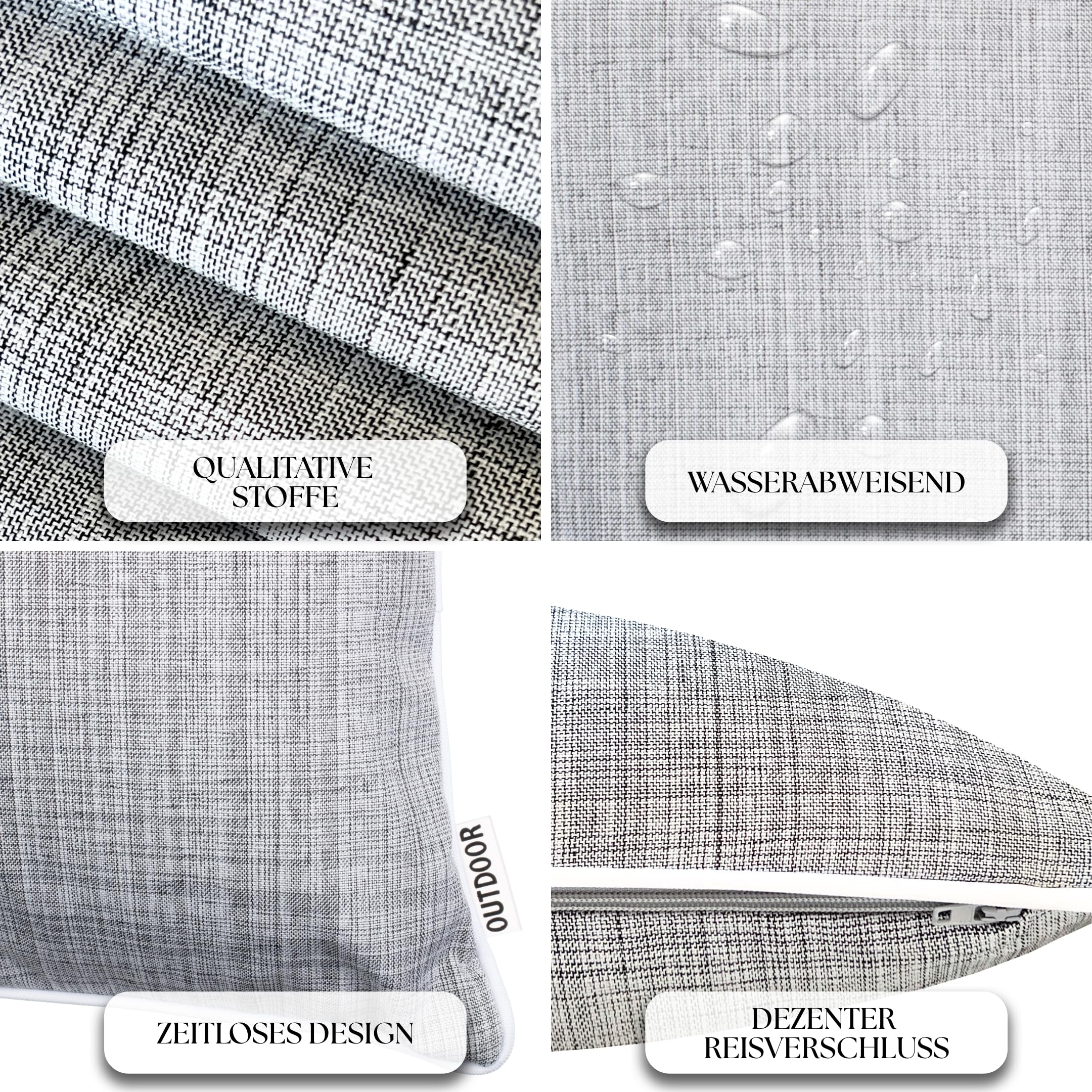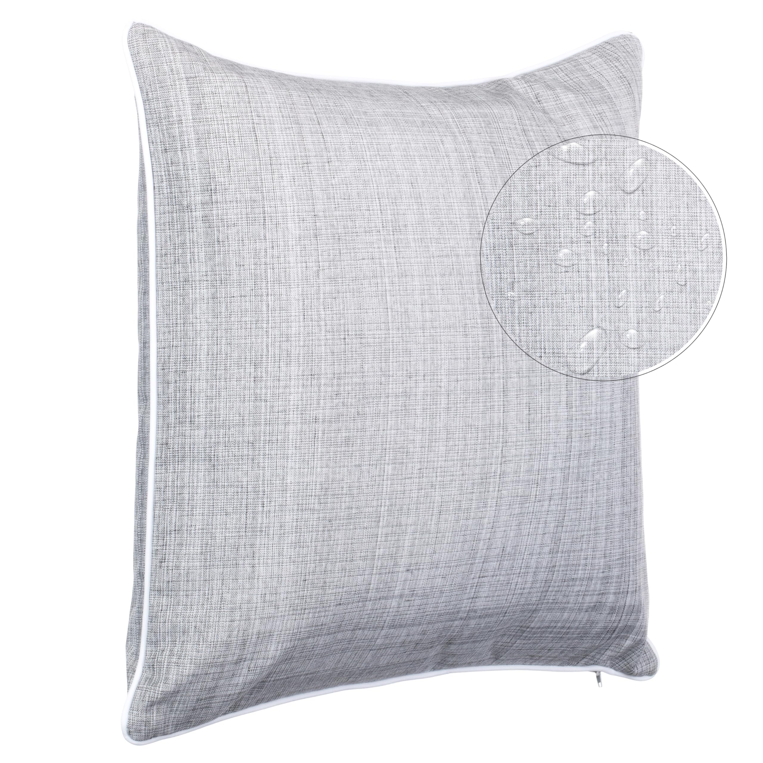Brandsseller 6er Set Outdoor Kissen 45x45 cm – Wetterfeste Zierkissen mit Paspel in Leinenoptik – Wasserabweisende Gartenkissen & Dekokissen für draussen – Sofakissen für Balkon & Terrasse - Hellgrau