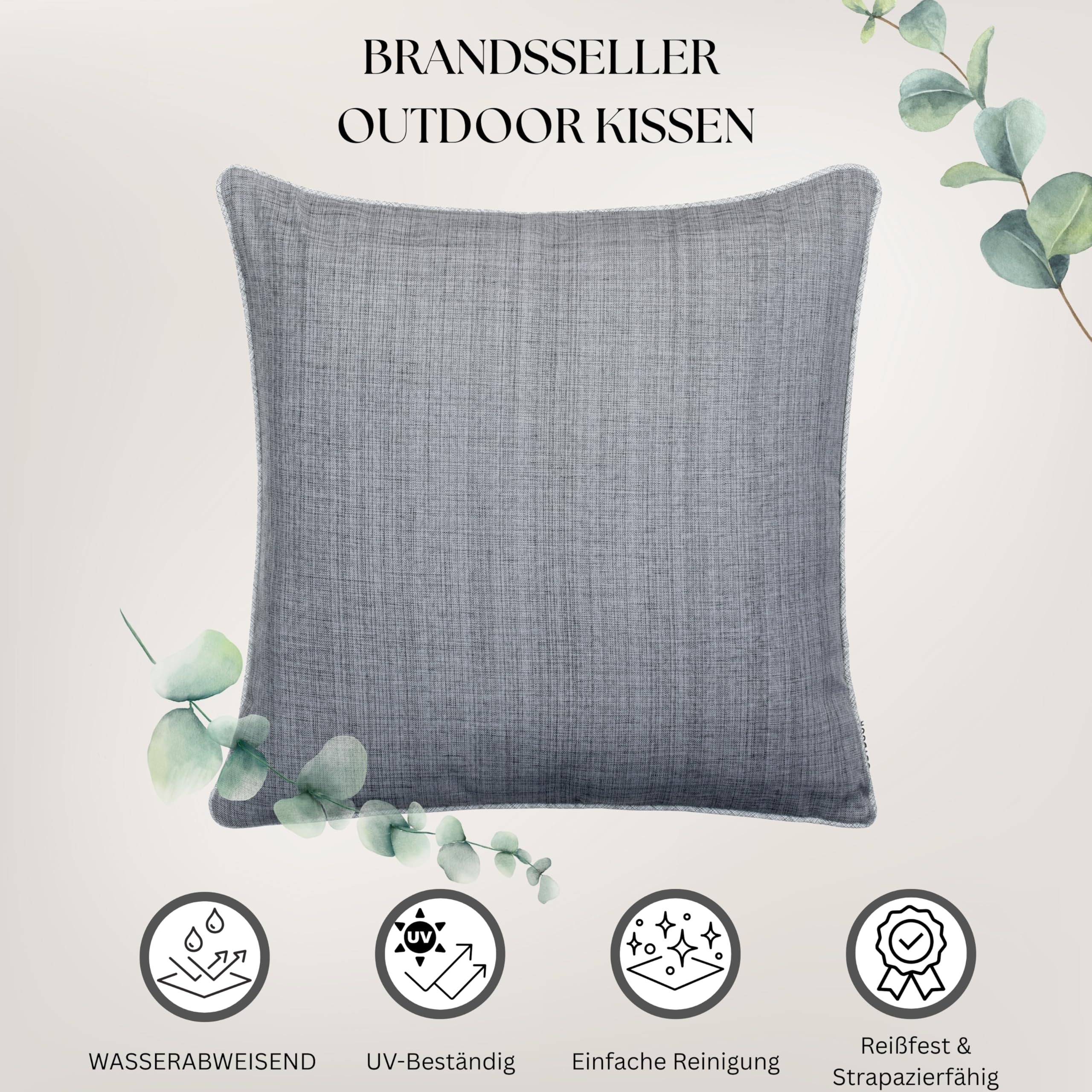 Brandsseller 2er Set Outdoor Kissen 45x45 cm – Wetterfeste Zierkissen mit Paspel in Leinenoptik – Wasserabweisende Gartenkissen & Dekokissen für draussen – Sofakissen für Balkon & Terrasse - Grau