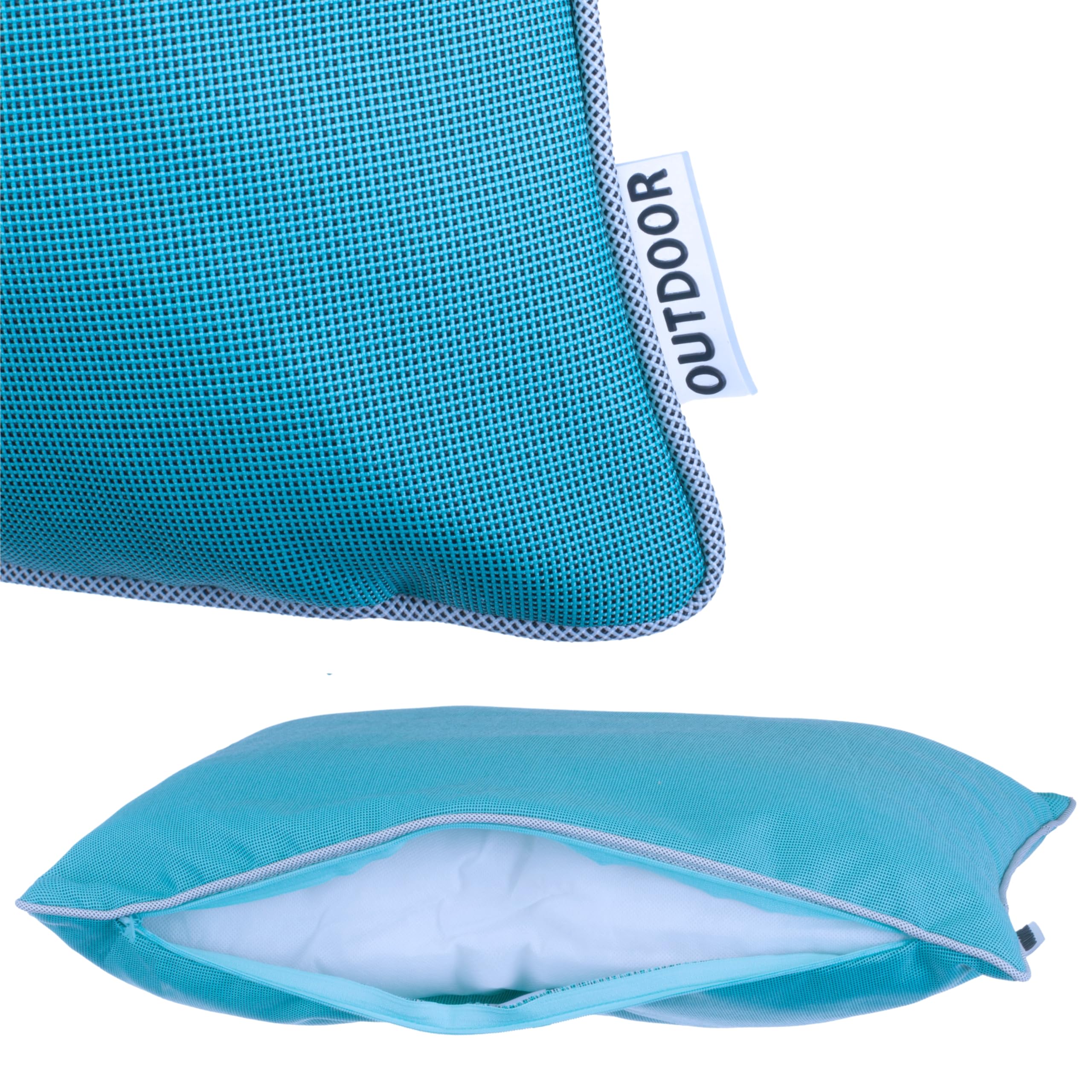Brandsseller 2er Set Outdoor Kissen 45x45 cm – Wetterfeste Zierkissen mit Paspel – Wasserabweisende Gartenkissen & Dekokissen für draussen – Sofakissen für Balkon & Terrasse – Aqua
