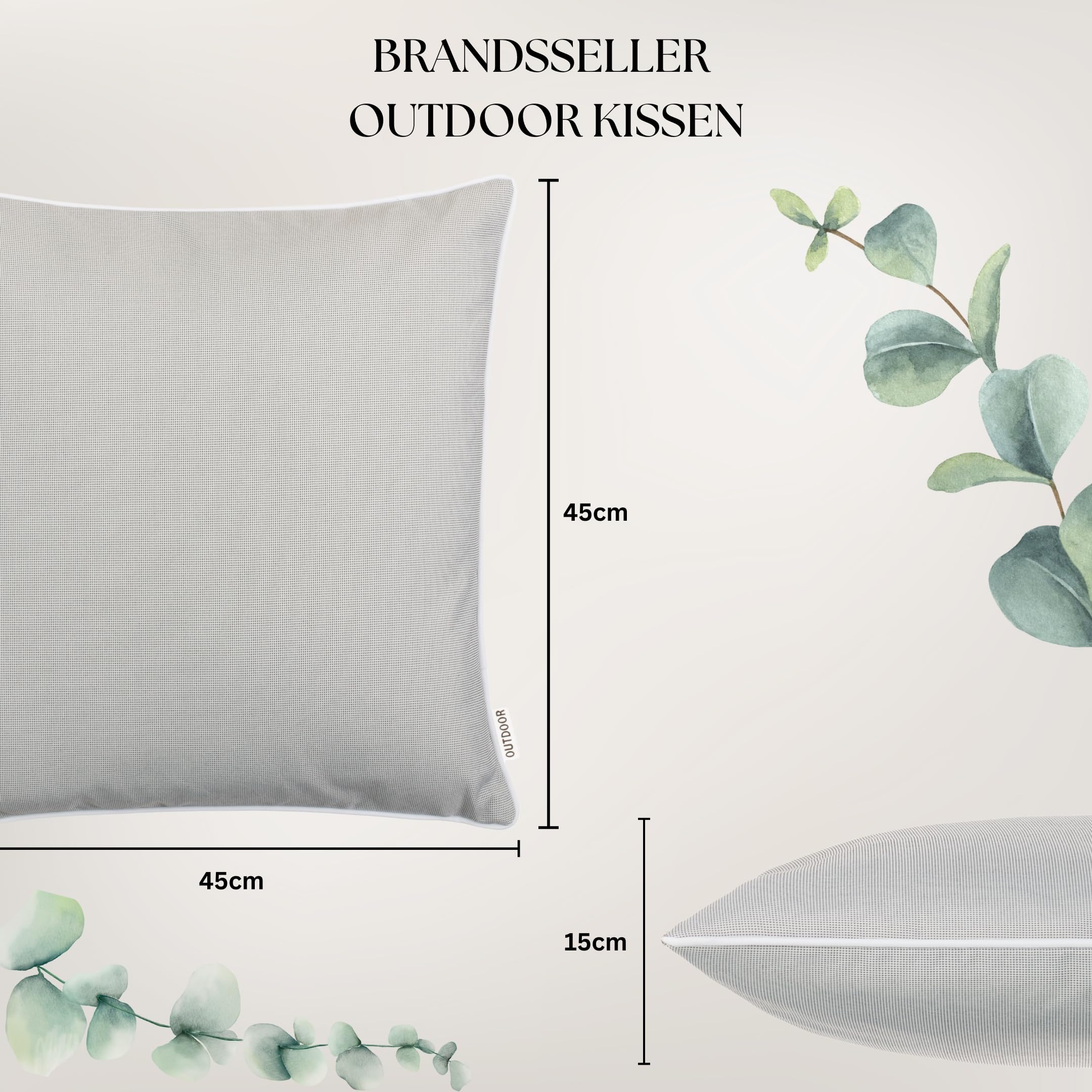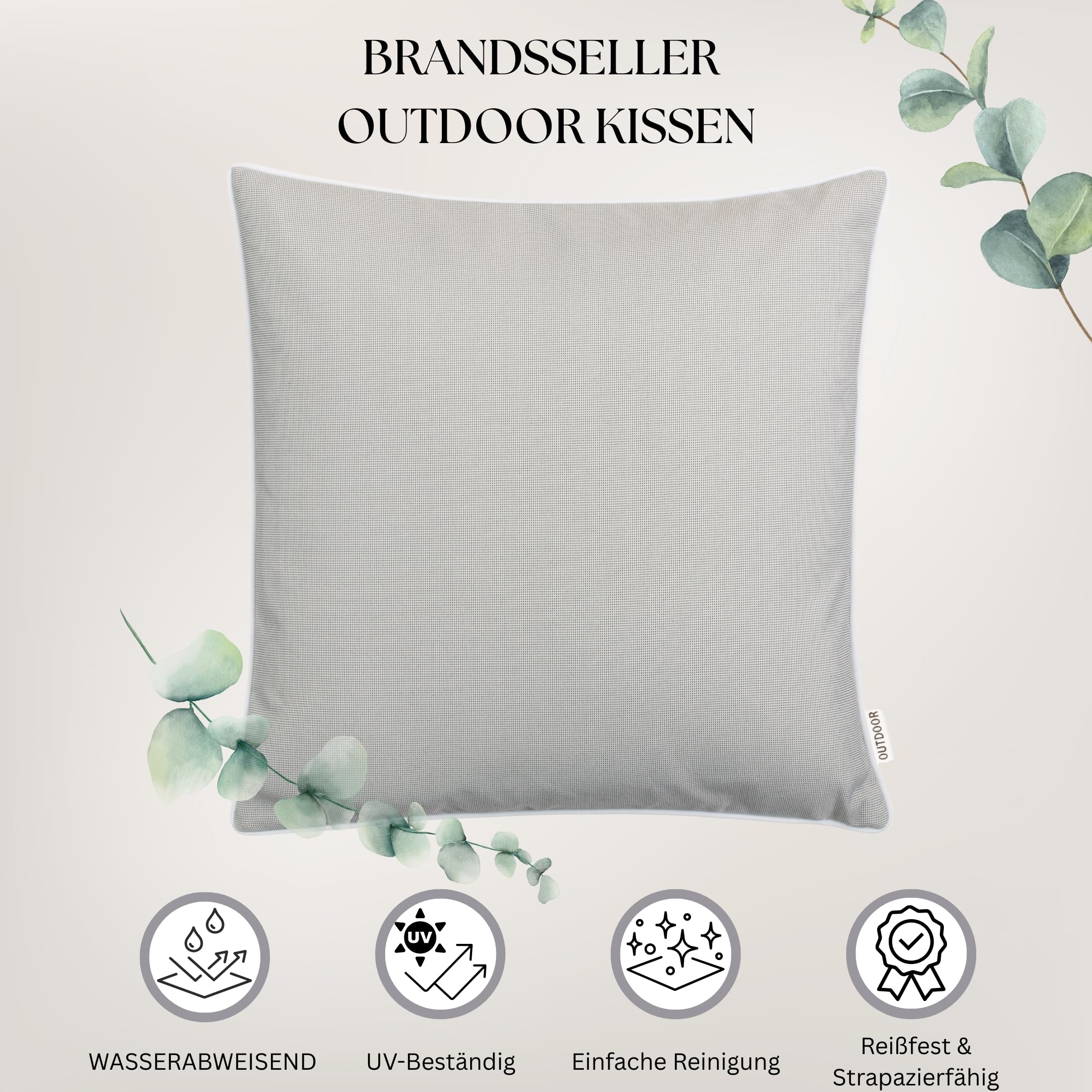 Brandsseller 2er Set Outdoor Kissen 45x45 cm – Wetterfeste Zierkissen mit Paspel – Wasserabweisende Gartenkissen & Dekokissen für draussen – Sofakissen für Balkon & Terrasse – Hellgrau