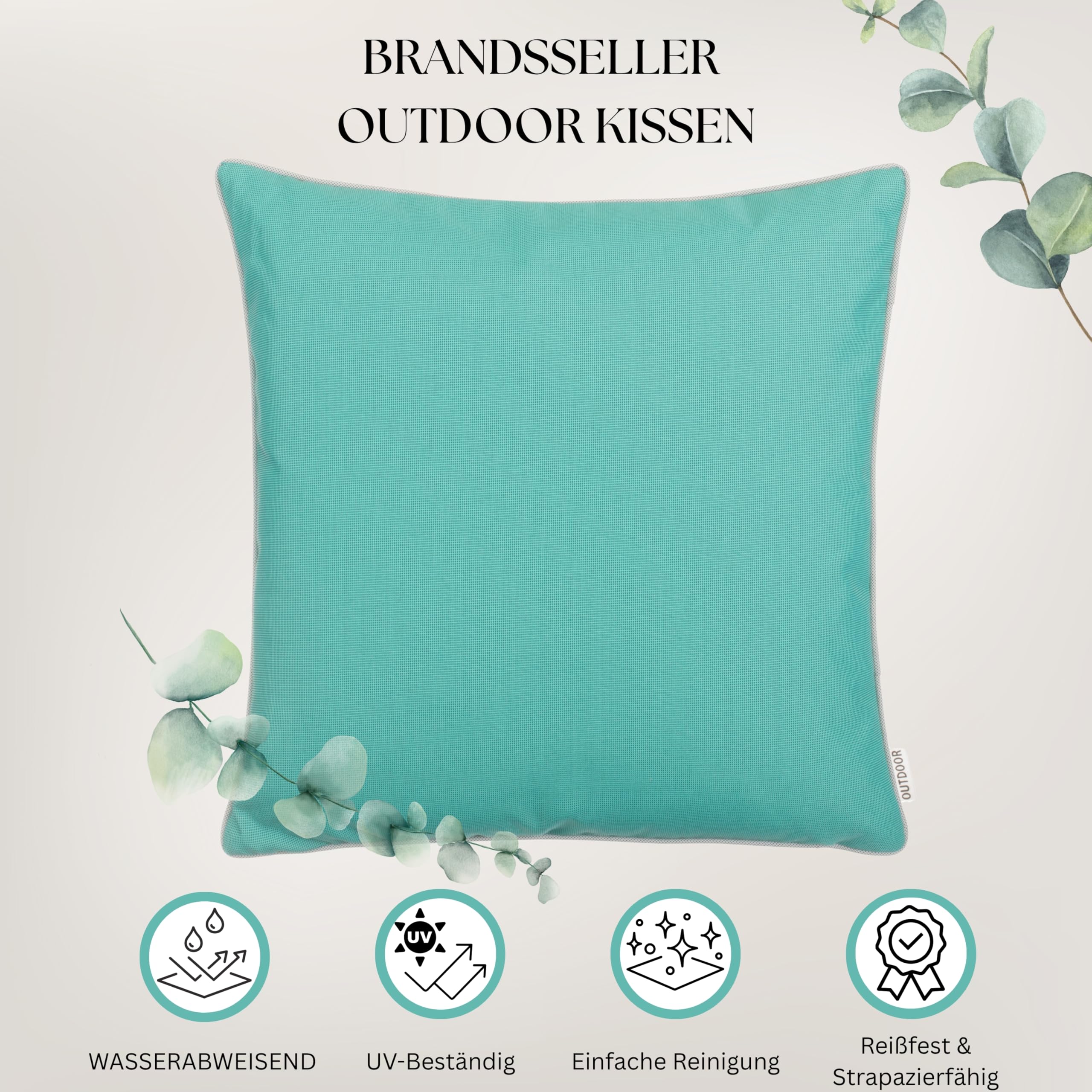 Brandsseller 4er Set Outdoor Kissen 45x45 cm – Wetterfeste Zierkissen mit Paspel – Wasserabweisende Gartenkissen & Dekokissen für draussen – Sofakissen für Balkon & Terrasse – Türkis
