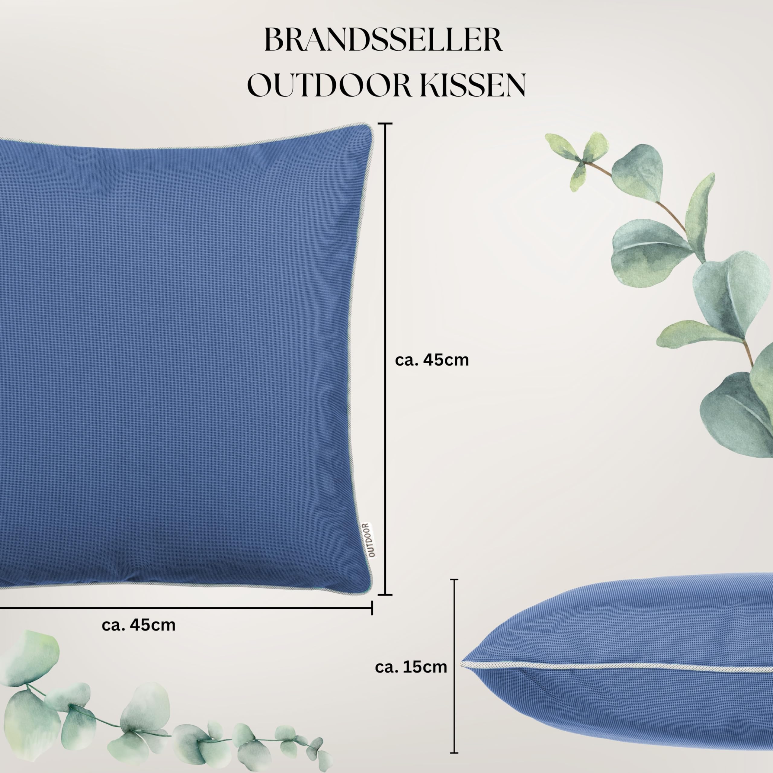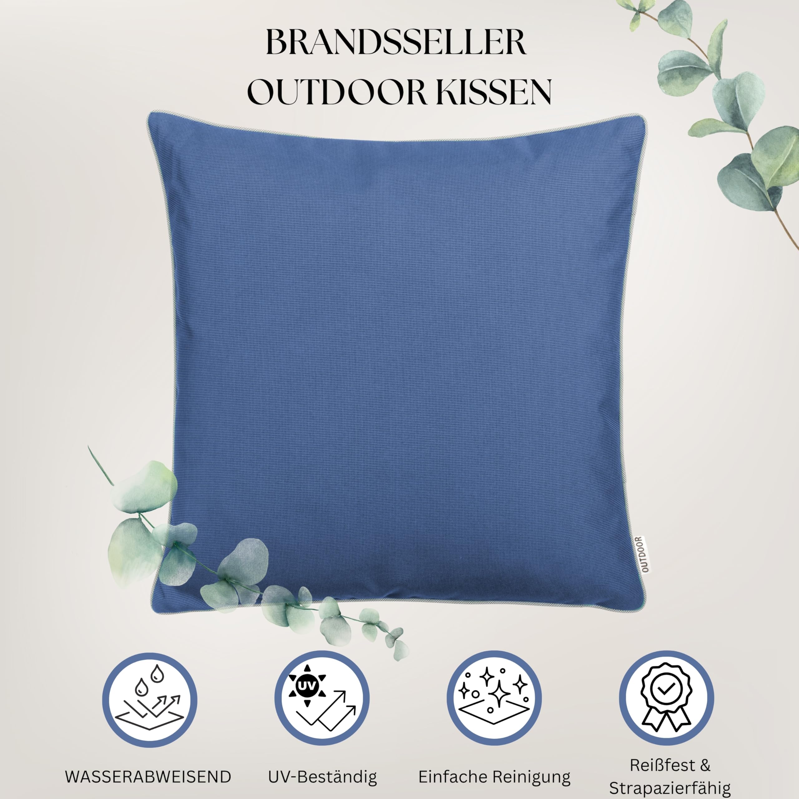 Brandsseller 4er Set Outdoor Kissen 45x45 cm – Wetterfeste Zierkissen mit Paspel – Wasserabweisende Gartenkissen & Dekokissen für draussen – Sofakissen für Balkon & Terrasse – Blau