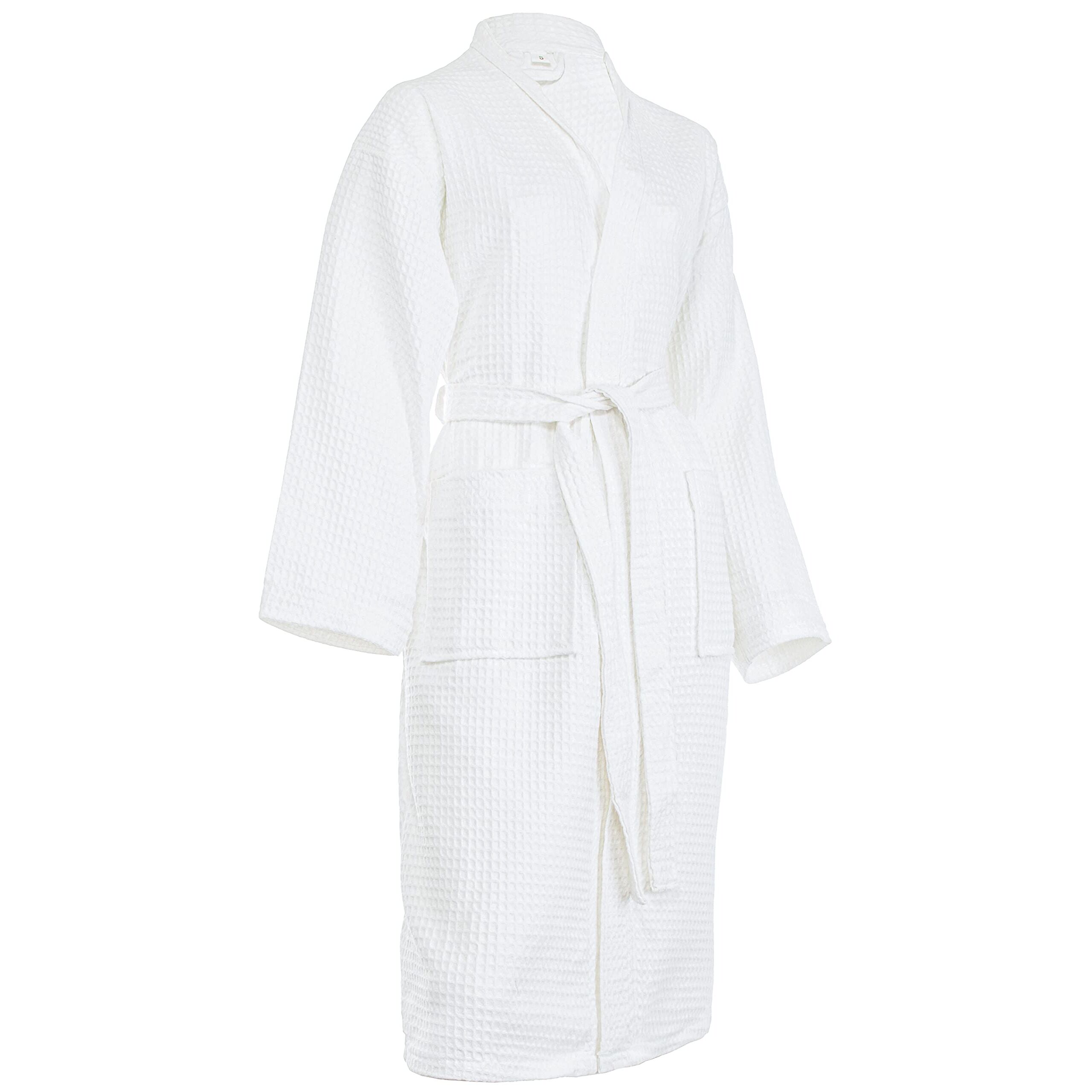 Brandsseller Unisex Bademantel aus Baumwolle XL – Leichter Morgenmantel aus Waffel-Piqué für Damen & Herren – Saunamantel / Hausmantel für Wellness & Zuhause - Weiß