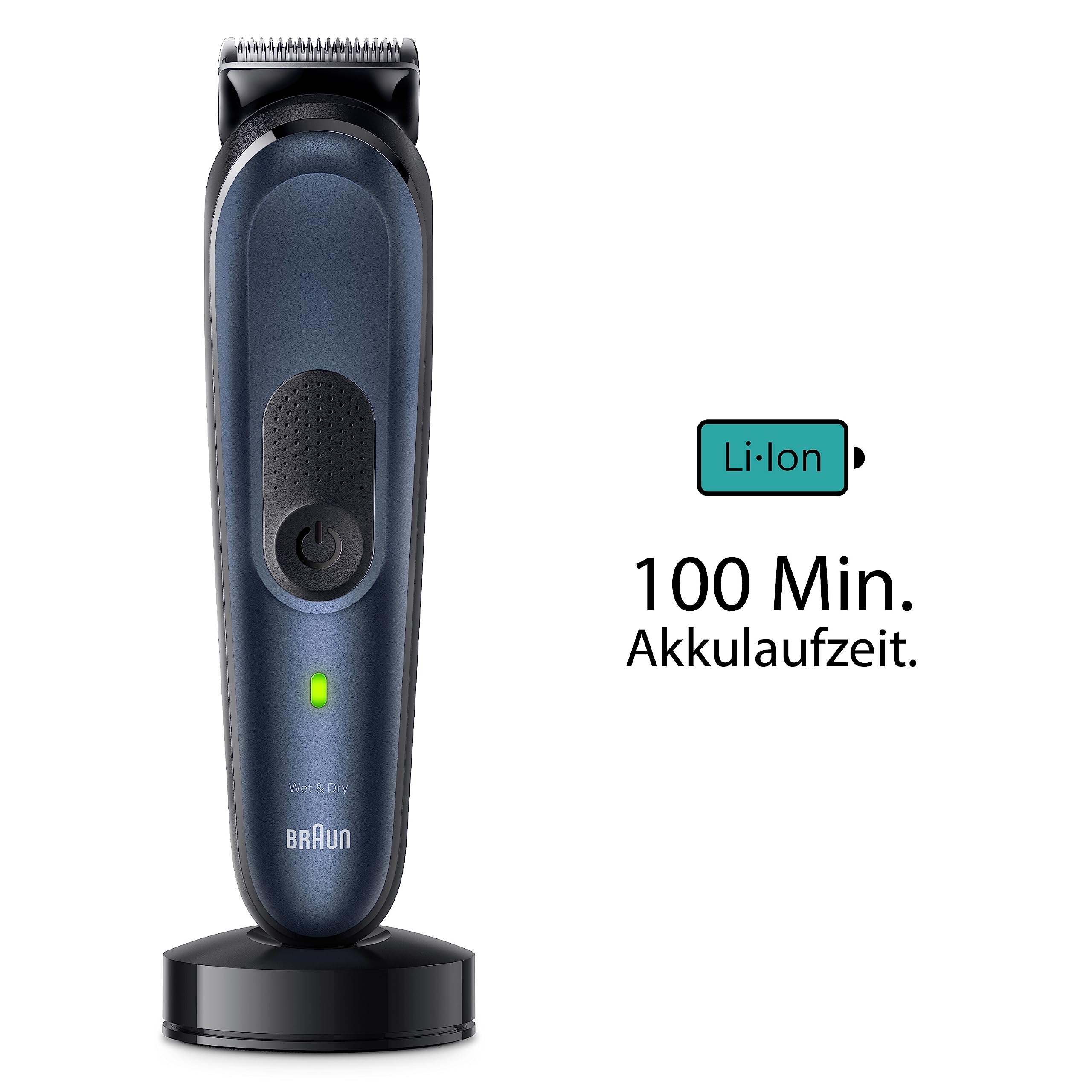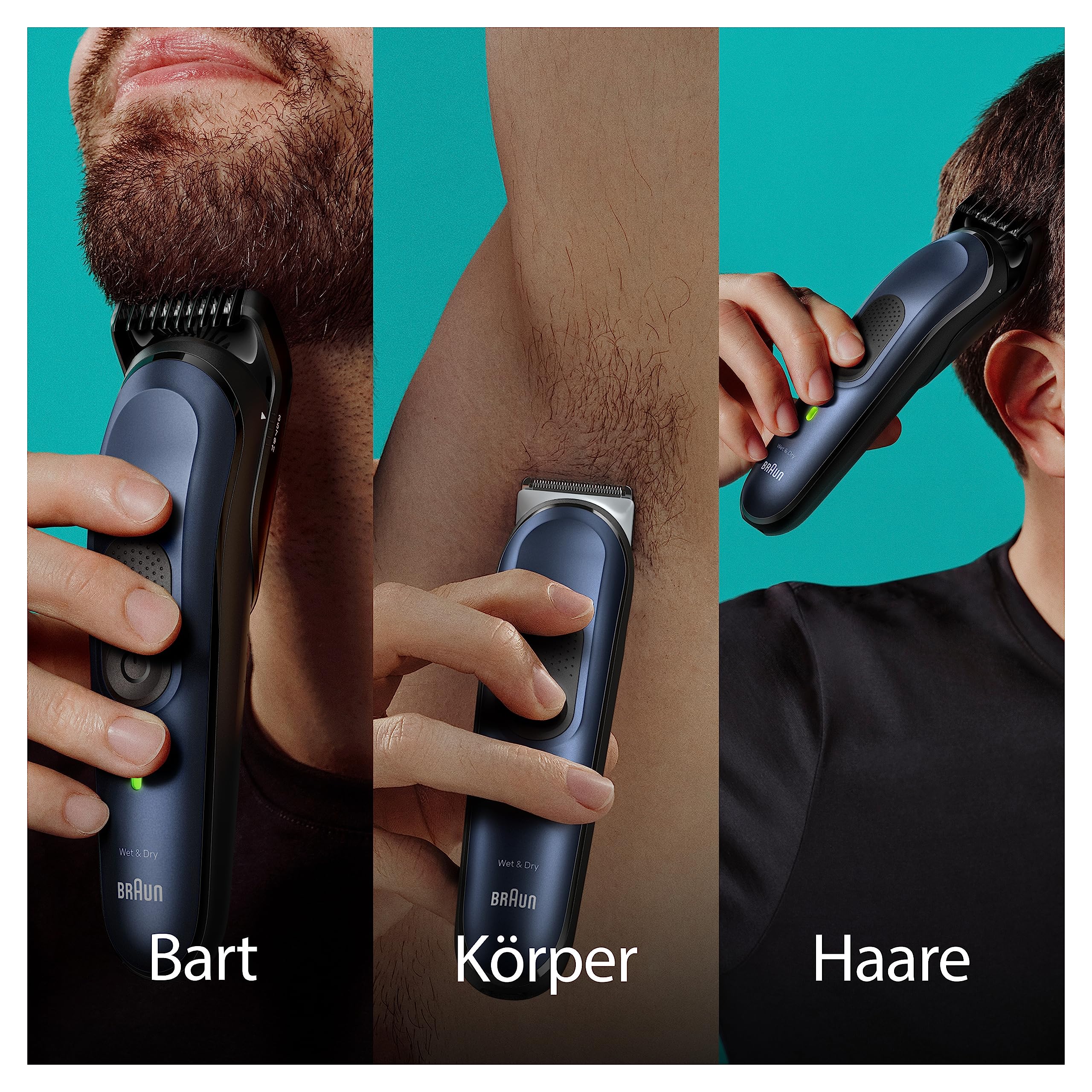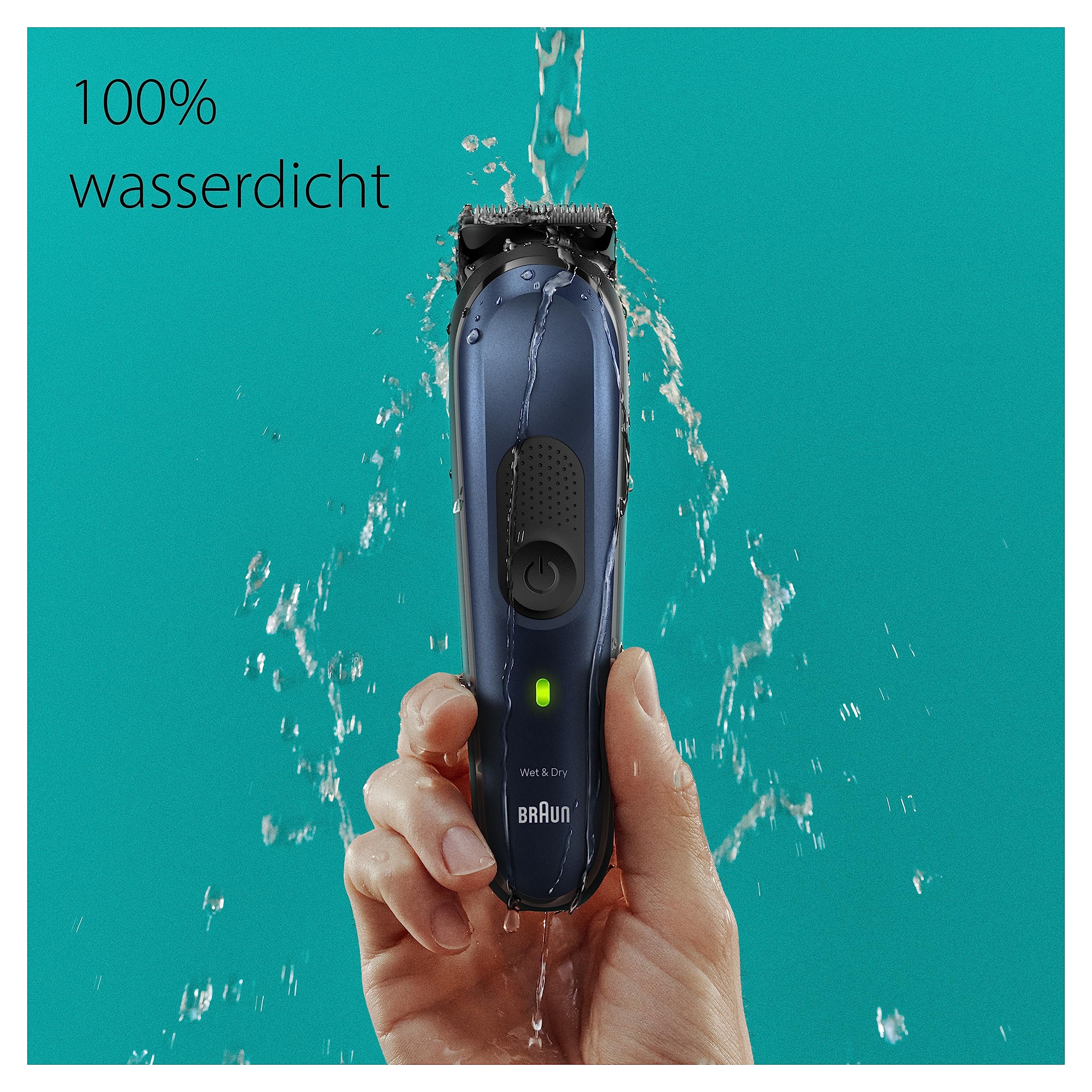 Braun All-In-One Trimmer-Set 7, 10-in-1 Multigroom, Barttrimmer, Nasenhaartrimmer, Haarschneidemaschine für Gesicht, Kopf und Körper, 100 Min. Akku, 14 Längen (3–21 mm), Wasserdicht, MGK7410, Blau