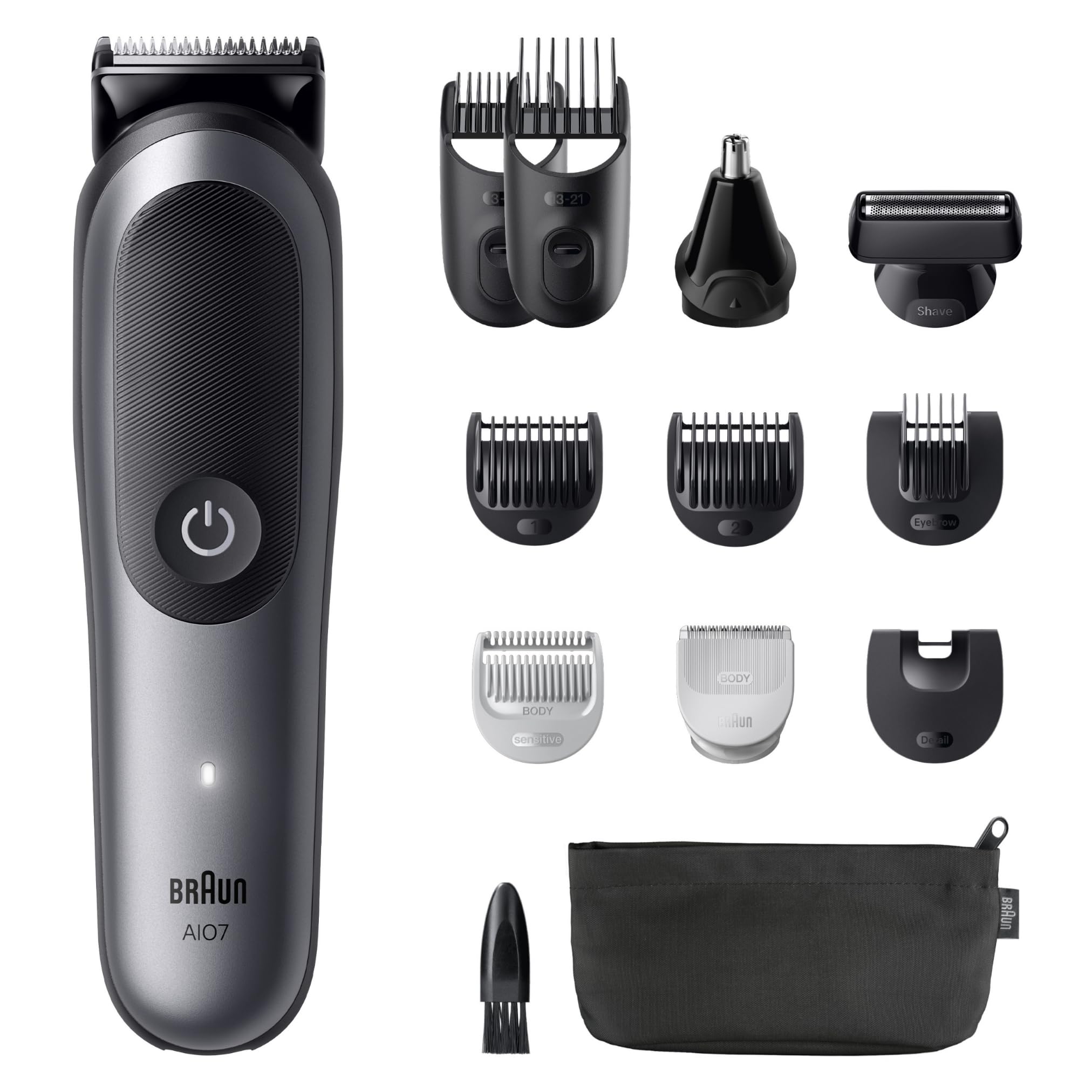 Braun Bundle mit All-in-One Series 7, 12-in-1 Multigroom Kopf und Körper, 120 Min Akku, 14 Längen (3–21 mm), Wasserdicht, AIO7545, Grau + Series XT3 Gesicht & Körper, Wasserdicht, XT3200, Schwarz