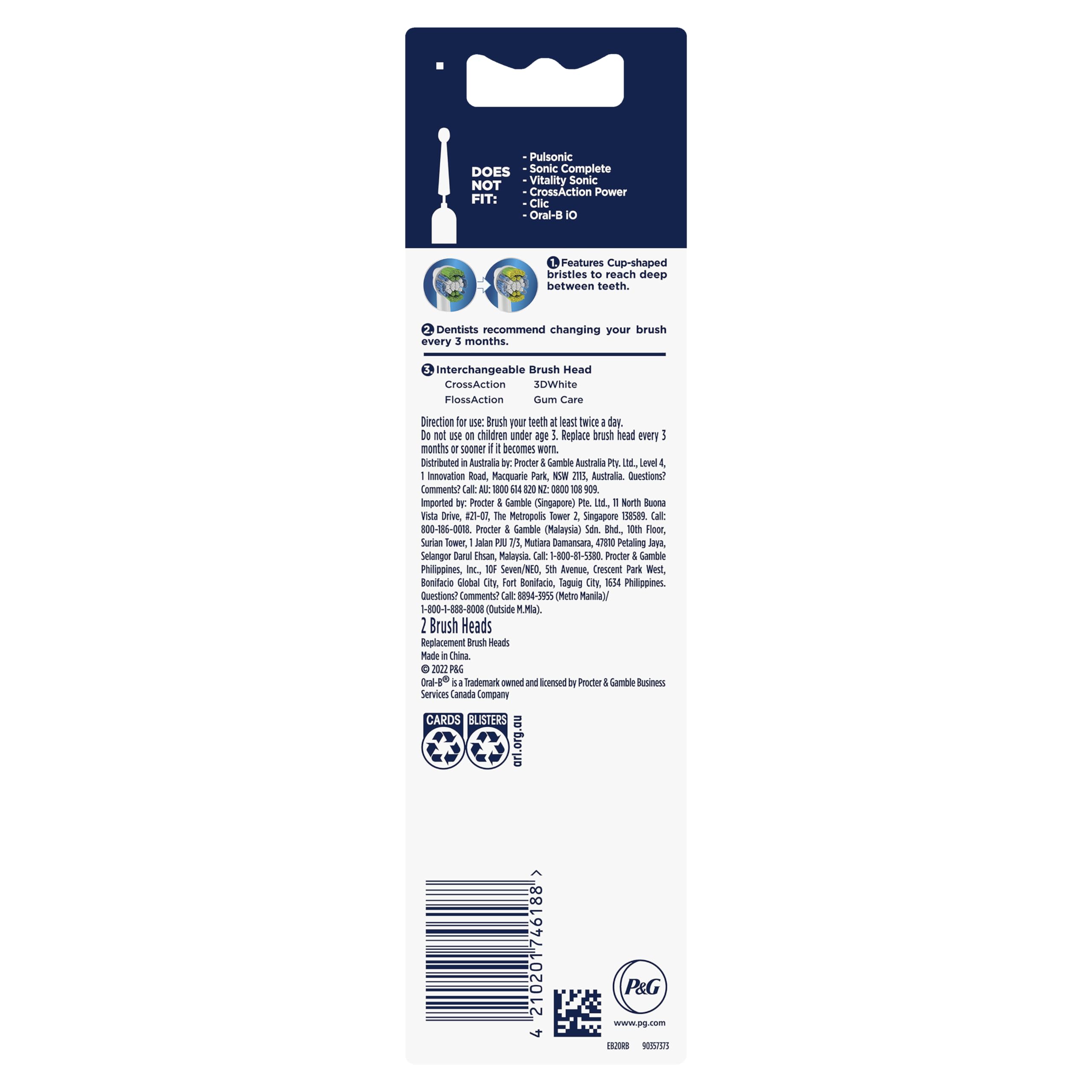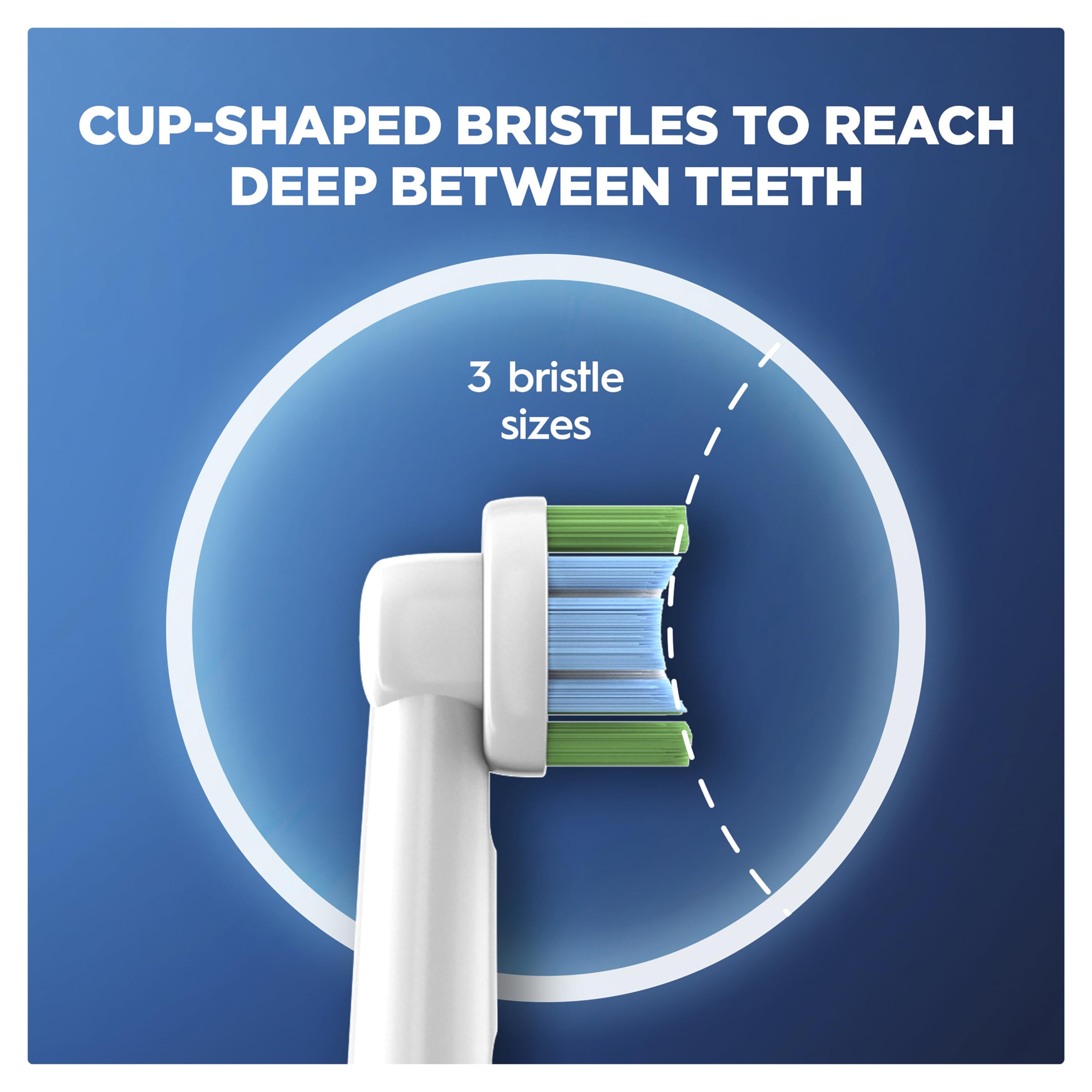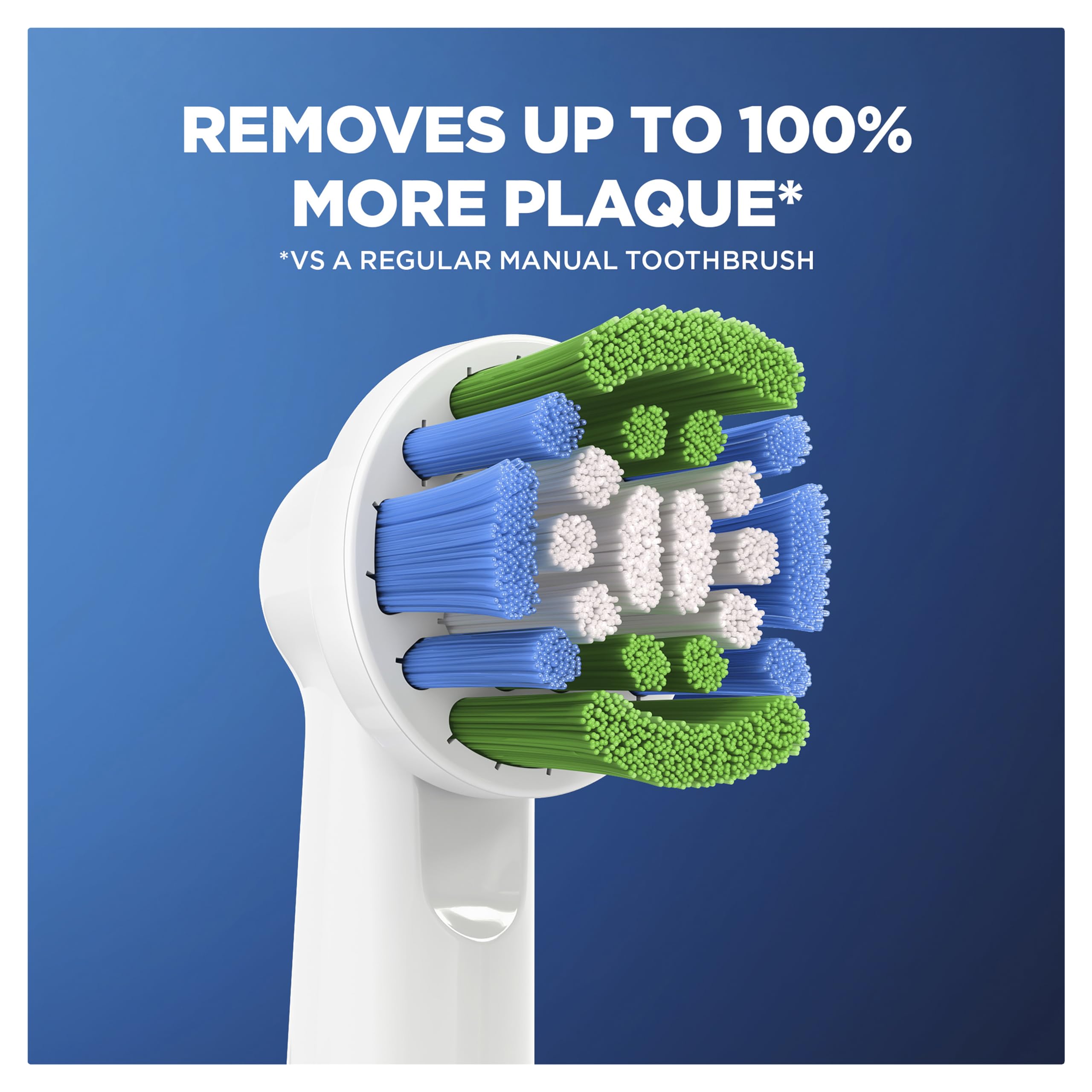 Das fortschrittliche Borstensystem entfernt Plaque wirkungsvoll und reinigt effizient zwischen den Zähnen sowie unter dem Zahnfleischrand.Passend für alle Oral-B Zahnbürsten mir rundem Bürstenkopf