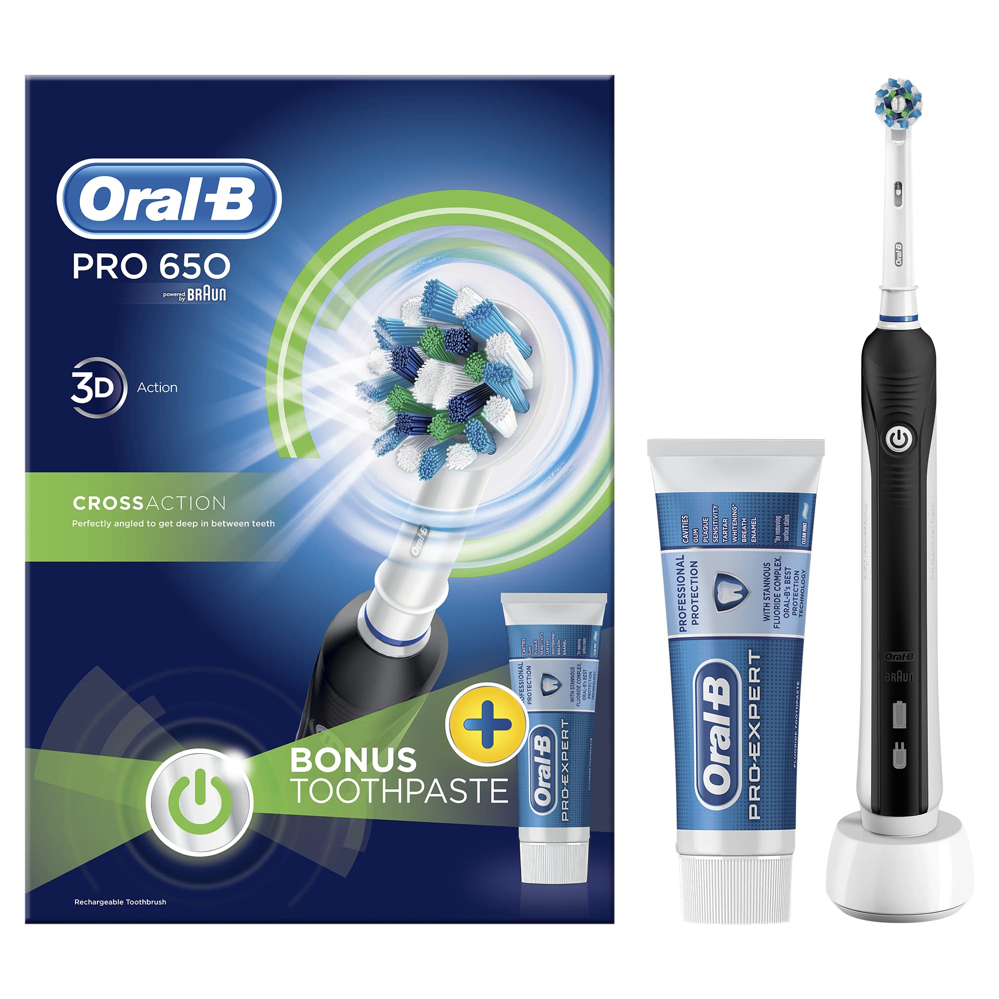 Braun Oral-B Pro 650 CrossAction Elektrische Zahnbürste und Etui, Verpackung kann variieren, Schwarz