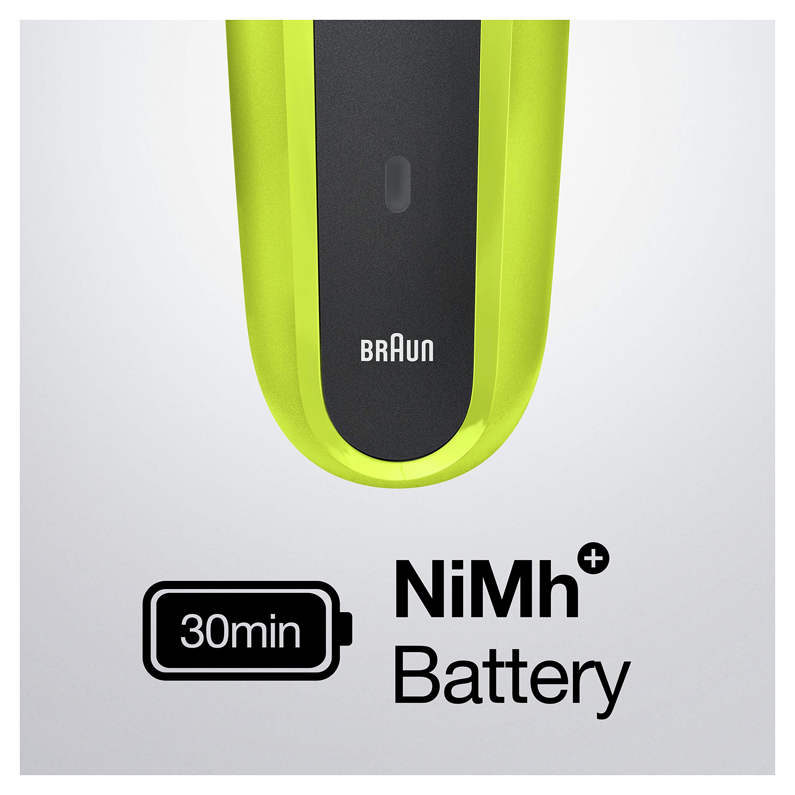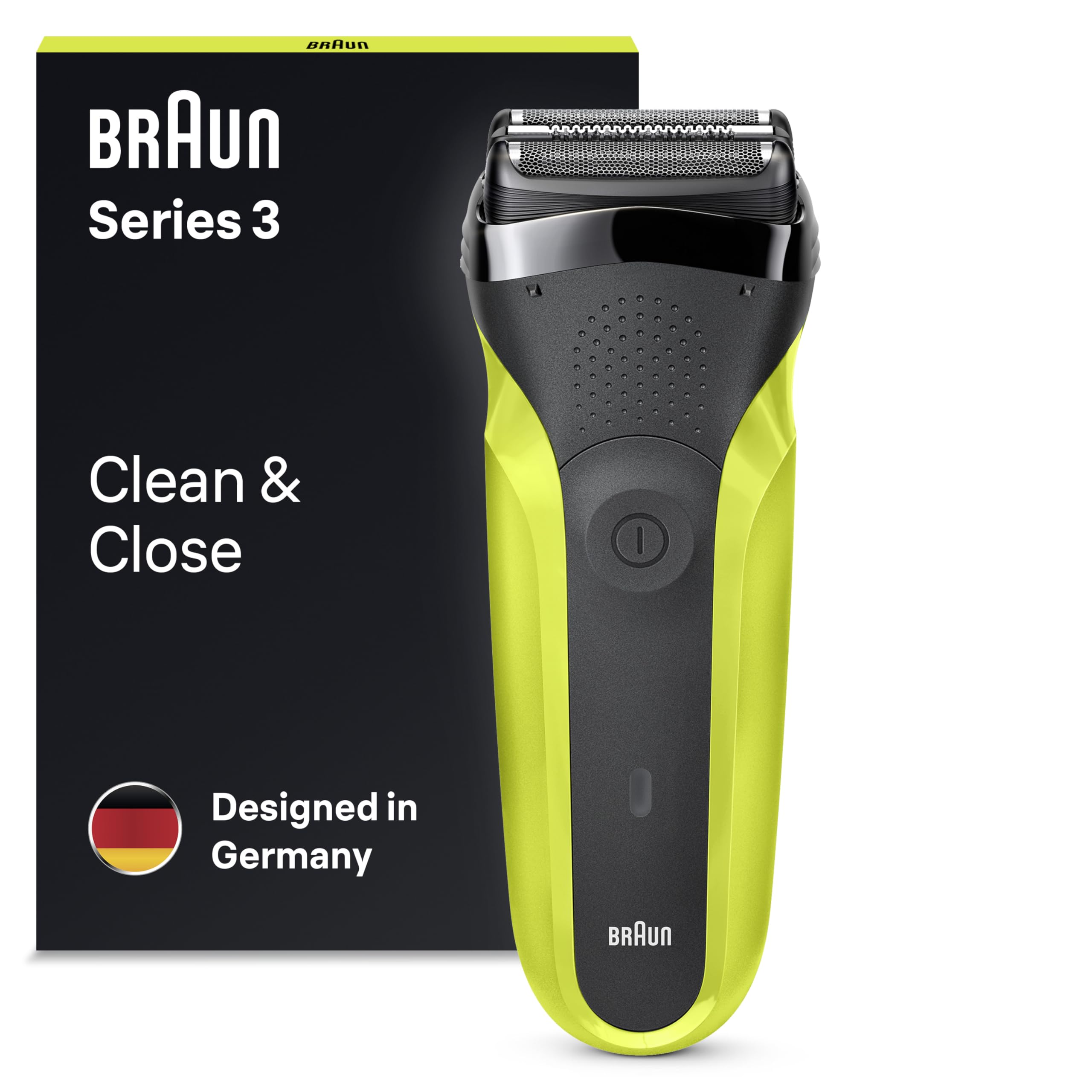 Braun Series 3 300S Elektrorasierer mit 3 flexiblen Klingen, wiederaufladbar und kabellos, Elektrorasierer mit waschbarer Folie, Schwarz/Elektro-Grün (1er Pack)