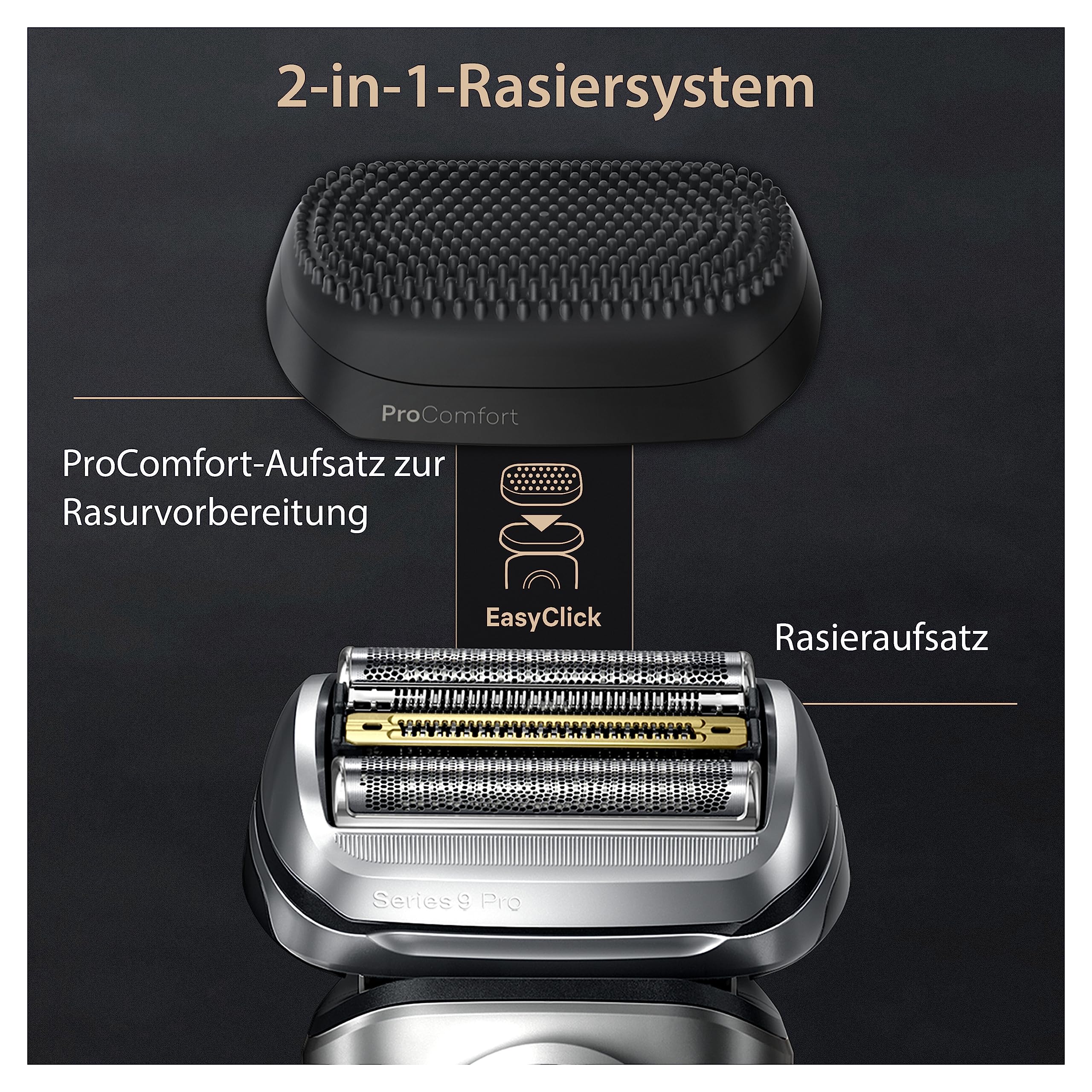 • 2-in-1-Rasiersystem: Erhalten Sie die bisher gründlichste Rasur (nur im Vergleich zur Braun Series 9 Pro+ Rasur getestet) bei ultimativem Hautkomfort mit dem Braun Series 9 Pro+ und ProComfort Aufsatz zur Rasurvorbereitung