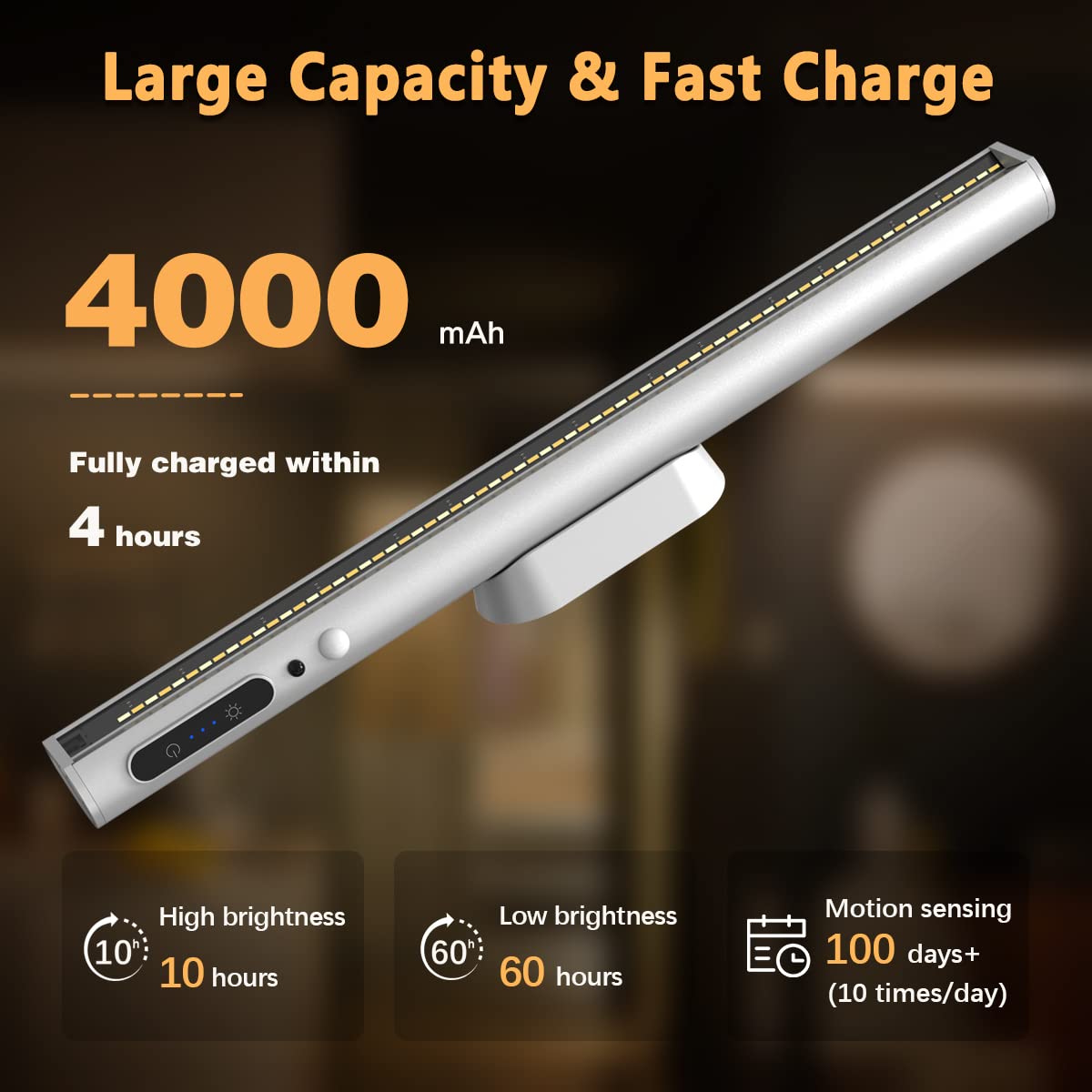 LED-Schreibtischlampe, kabellos, mit Bewegungsmelder, bravzurg 4000 mAh, Licht, wiederaufladbar, USB, LED-Leiste, Küche, magnetisch, Fernbedienung, Wandbeleuchtung für Schrank, Tisch, Spiegel, Schrank