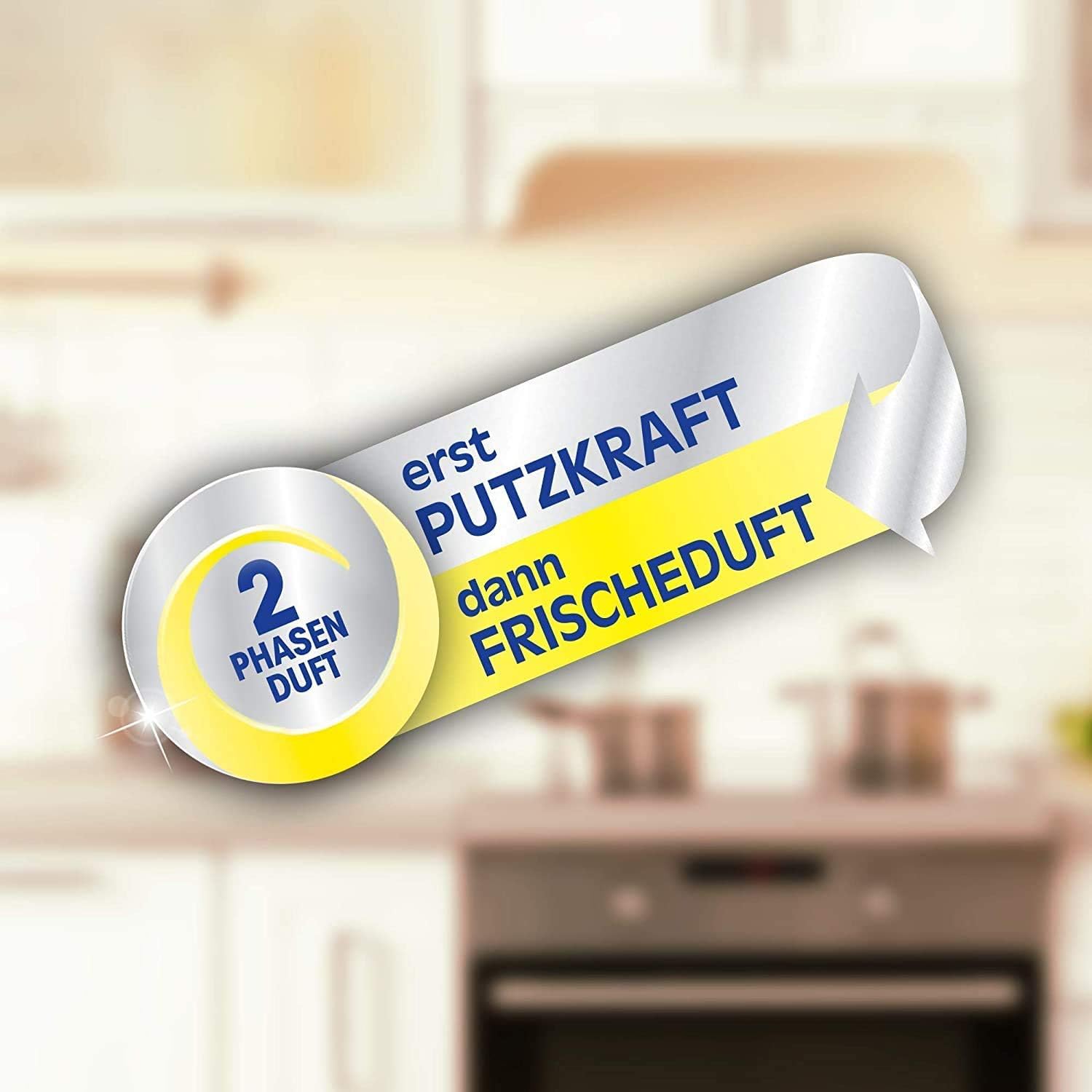 • Zusätzlich sorgt der 2-Phasen Duft für einen kraftvollen Duft beim Aufsprühen und einen angenehmen frischen Duft nach dem Putzen