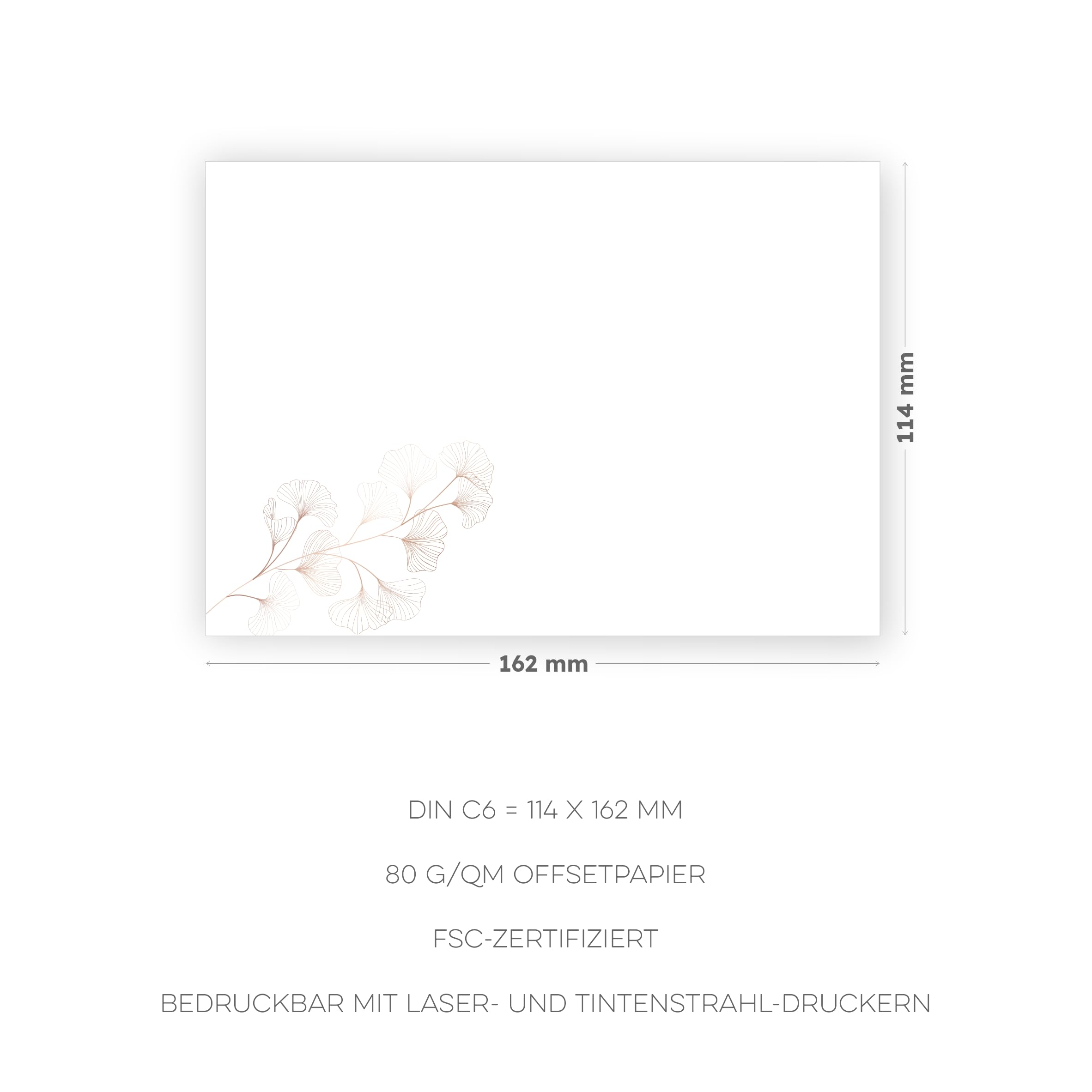 Briefbögen mit zarten Gingko-Motiv im DIN A5 Format oder Briefumschläge selbstklebend im C6 Format