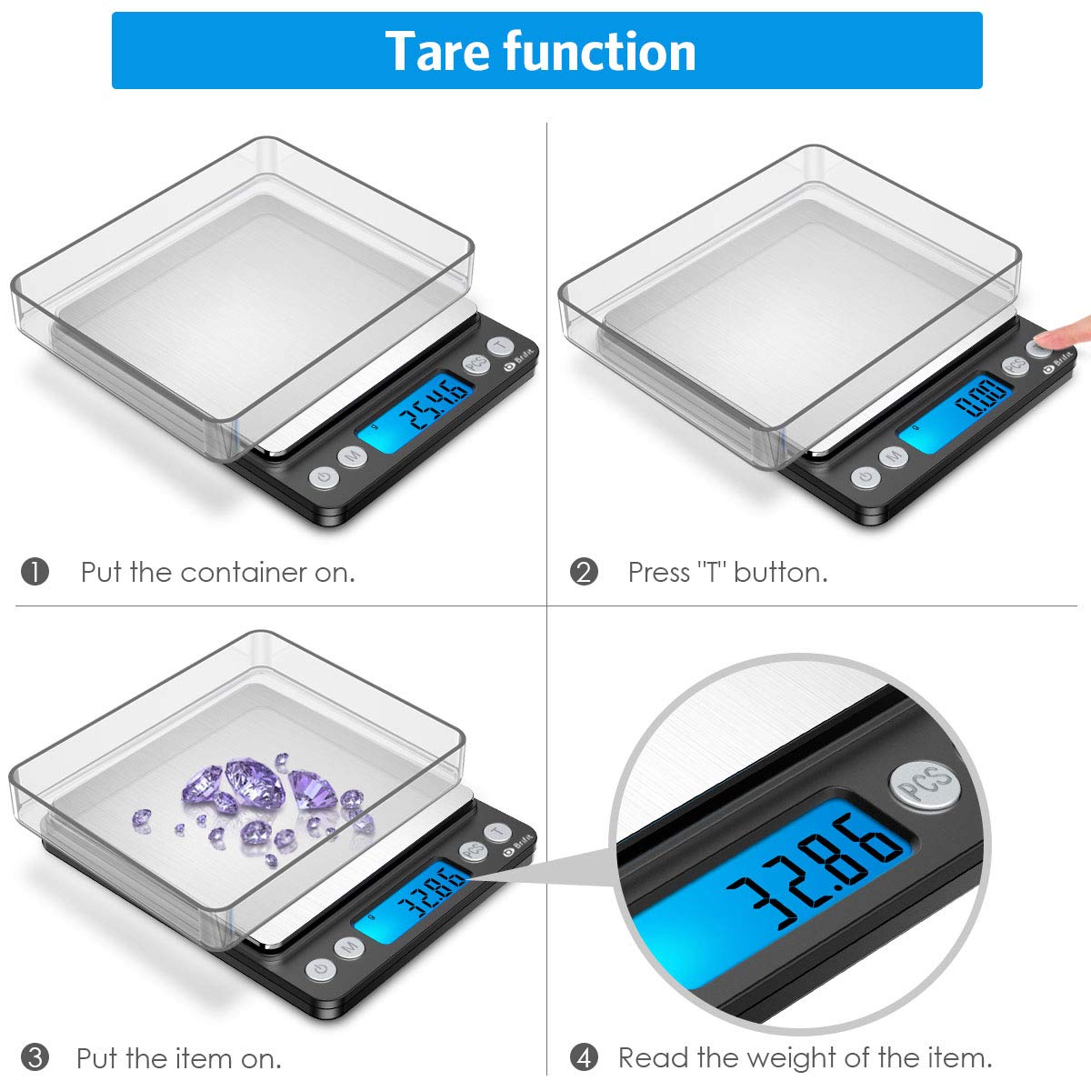 ♪ Komfortable bedienung: Transparente Tabletts können zum Wägen oder zum Schutz elektronischer Waagen verwendet werden, Auto-off-Zeit einstellbar.