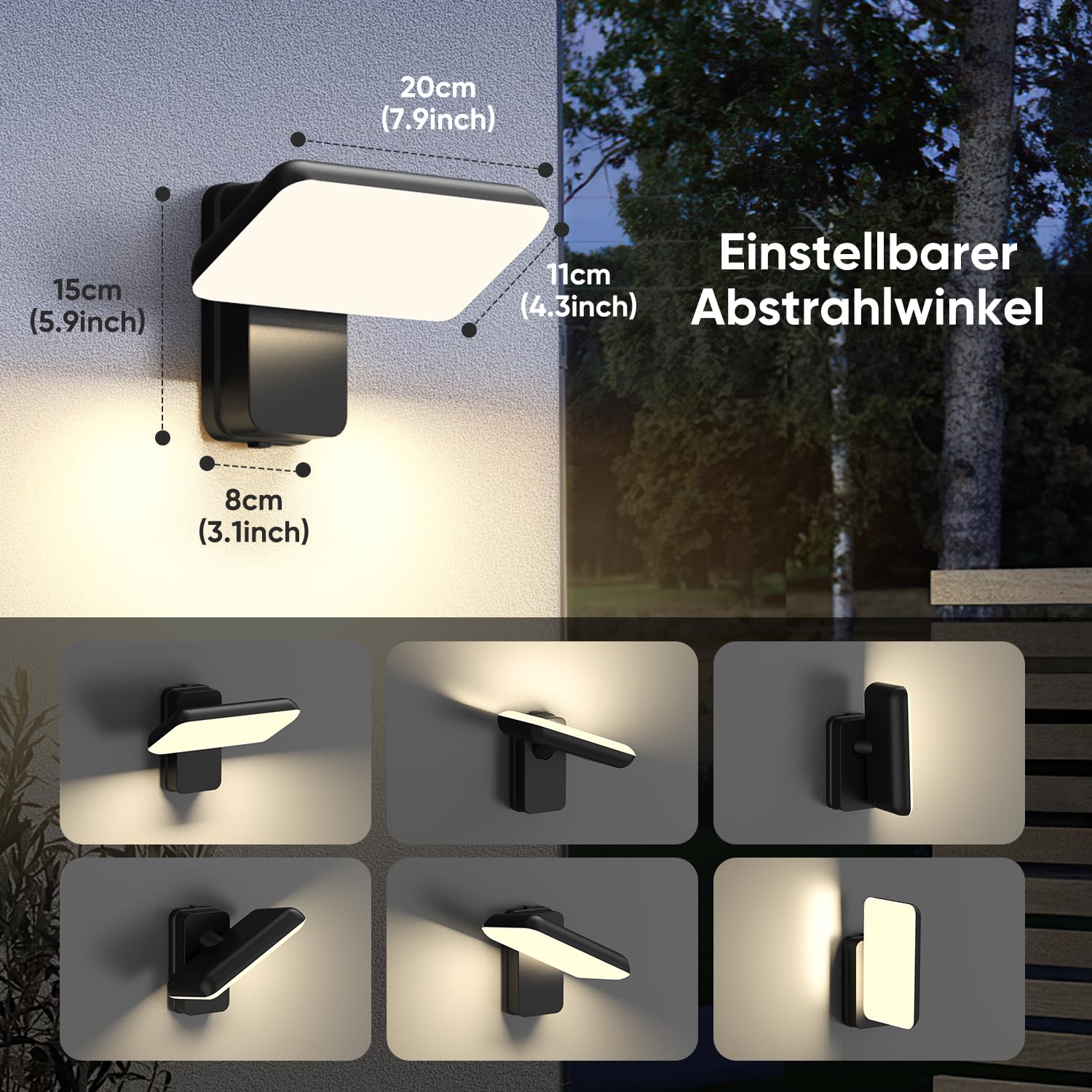 brightower 18W Aussenlampe Wandleuchte Aussen, Wasserdicht IP65 aussenlampe wand, Wandleuchte Innen/Aussen mit Schwenkbar LED Panel, Warmweiss 3000K Aussenwandleuchte für Garten Terrasse, Schwarz