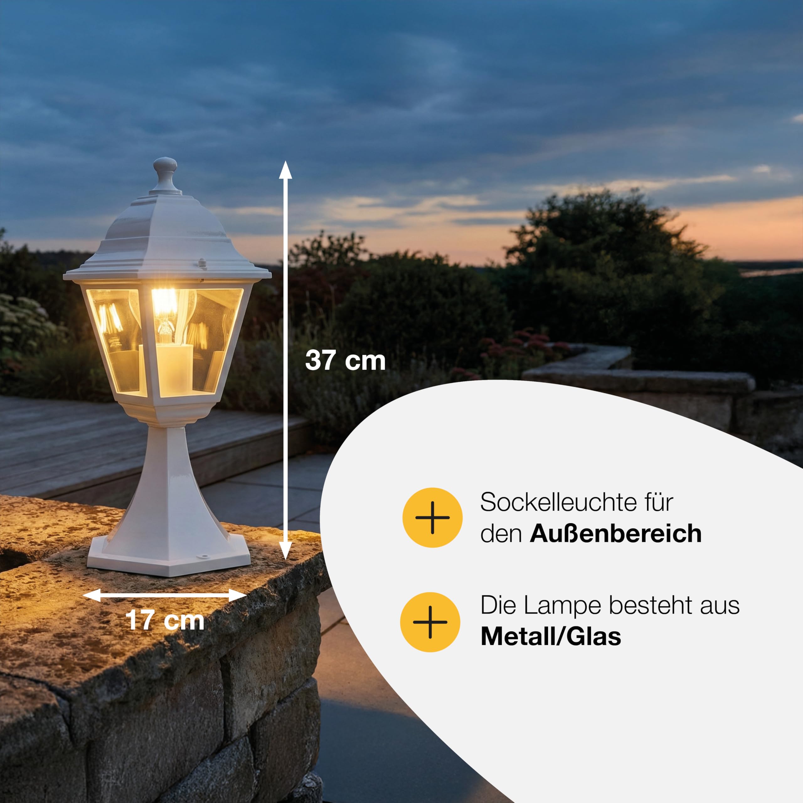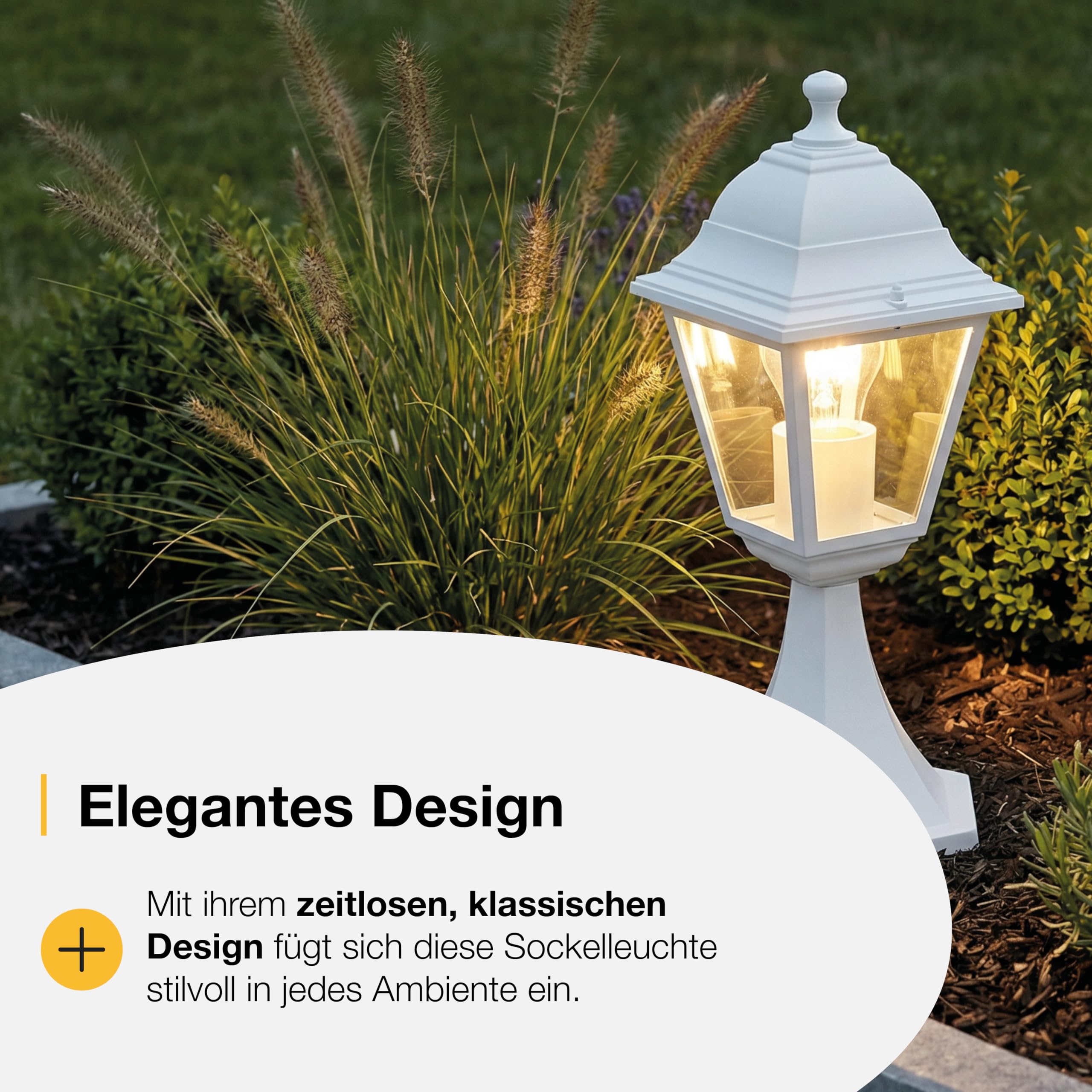 BRILLIANT Nissie Sockelleuchte – kompakte Aussenleuchte für Mauern und Terrassen Die BRILLIANT Nissie Sockelleuchte ist eine platzsparende Lösung für die Beleuchtung im Aussenbereich. Als kompakte Pollerleuchte eignet sie sich besonders für die Montage auf kleinen Mauern, Sockeln oder Terrassen, überall dort, wo bereits eine feste Auflagefläche vorhanden ist. Dank der Schutzart IP44 ist die Aussenleuchte spritzwassergeschützt und für den Einsatz im Aussenbereich geeignet, auch an Stellen mit geringerem Witterungsschutz. Das robuste Gehäuse aus Metall und Glas sorgt für eine langlebige Nutzung und verleiht der Gartenleuchte eine hochwertige Anmutung. Die weisse Oberfläche fügt sich dezent in unterschiedliche Aussenbereiche ein. Die Sockelleuchte ist mit einer E27 Fassung ausgestattet und für die Verwendung von Normallampen konzipiert. Auch energiesparende LED Leuchtmittel können eingesetzt werden, um den Stromverbrauch zu reduzieren. Kein Leuchtmittel im Lieferumfang enthalten. Markenversprechen: Bei Brilliant stehen höchste Qualität, trendige Design und nachhaltige Innovation im Mittelpunkt. Wir bieten nicht nur exzellente Beleuchtungslösungen, sondern schaffen Erlebnisse, die Räume lebendig machen. Unsere Produkte vereinen modernste Technologie mit zeitloser Ästhetik – für ein Ambiente, das inspiriert und begeistert. Entdecken Sie unser Sortiment, über Tischlampen, Nachttischlampen, Stehlampen LED, Tischleuchten mit Kabel, Einbauleuchten, Deckenstrahler, Wandleuchten, Tageslichtlampen und vielem mehr.