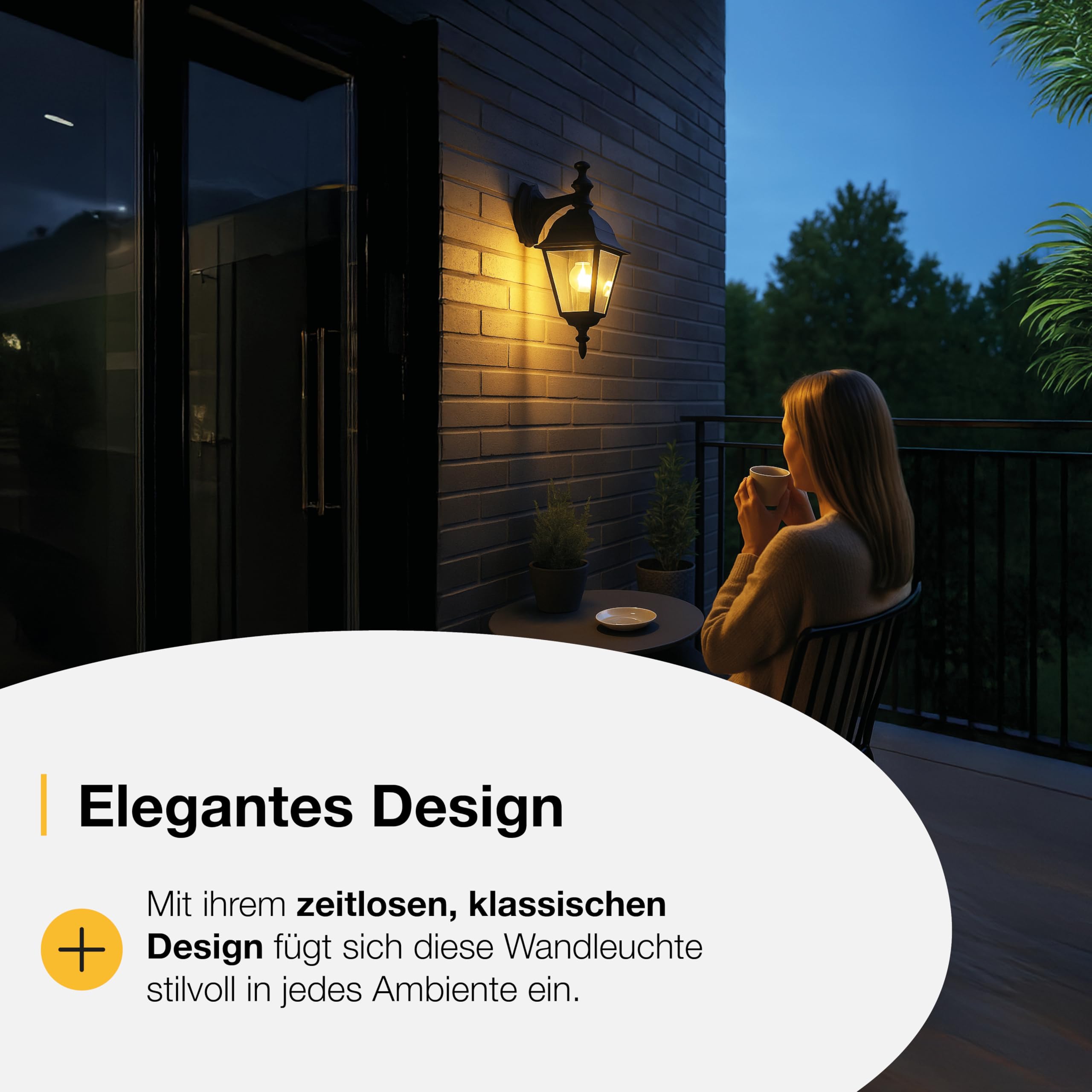 BRILLIANT Newport Aussenwandleuchte – hängende elegante Gartenbeleuchtung Die Newport hängende Aussenwandleuchte in elegantem schwarz ist die perfekte Lösung für Ihre Aussenbeleuchtung. Ob als Wandleuchte aussen, Gartenlampe oder Terrassenbeleuchtung – dieses Modell vereint modernes Design mit zuverlässiger Technik. Die robuste Aussenlampe mit E27-Fassung ist kompatibel mit LED-Leuchtmitteln bis 60W und bietet effiziente, stromsparende Beleuchtung rund ums Haus. Mit Schutzart IP23 ist die Aussenlampe für die Wand wetterfest und ideal für den dauerhaften Einsatz – selbst bei Regen. Die Montage ist einfach: Ob an der Hauswand, unter dem Dachvorsprung oder am Carport – die Aussenwandleuchte lässt sich vielseitig befestigen. Durch die hängende Bauform wirkt sie wie eine klassische Laterne – ideal für Hausfassaden, Carports oder Terrassenüberdachungen Markenversprechen: Bei Brilliant stehen höchste Qualität, trendige Design und nachhaltige Innovation im Mittelpunkt. Wir bieten nicht nur exzellente Beleuchtungslösungen, sondern schaffen Erlebnisse, die Räume lebendig machen. Unsere Produkte vereinen modernste Technologie mit zeitloser Ästhetik – für ein Ambiente, das inspiriert und begeistert. Entdecken Sie unser Sortiment, über Tischlampen, Nachttischlampen, Stehlampen LED, Tischleuchten mit Kabel, Einbauleuchten, Deckenstrahler, Wandleuchten, Tageslichtlampen und vielem mehr.