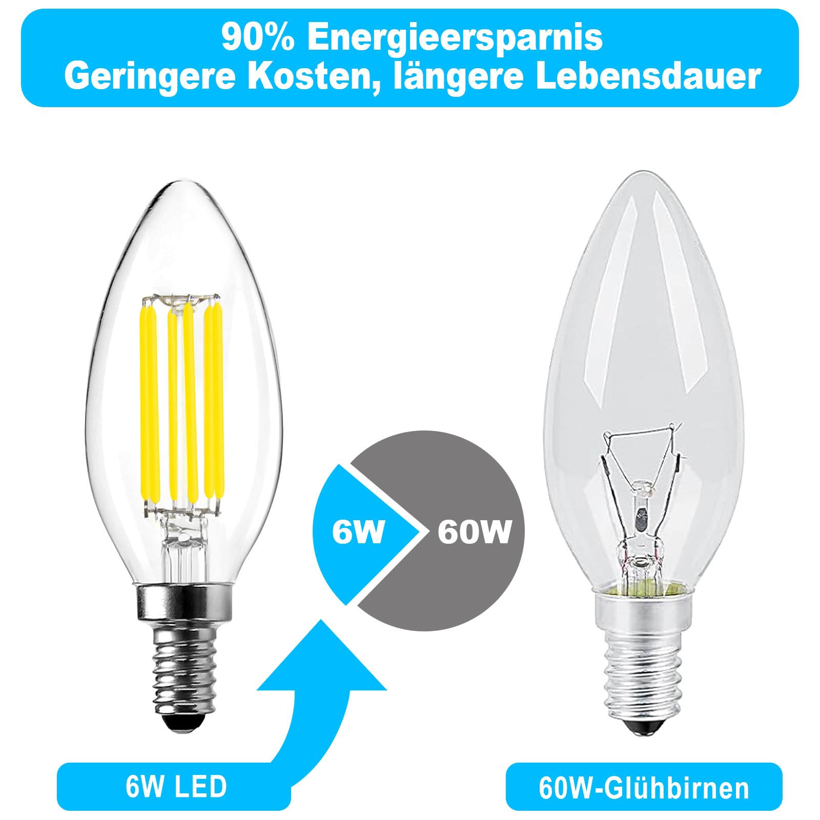 BRIMAX 10 Stück LED Dimmbare 6W Glühbirnen, E14 Fassung, 5000K Kaltweiss, 6W ersetzt 60 Watt, 600 Lumen, AC220-240V, Glas Klar Edison Fadenlampe C35 Kerzenform für Kronleuchter Arbeiten Studieren