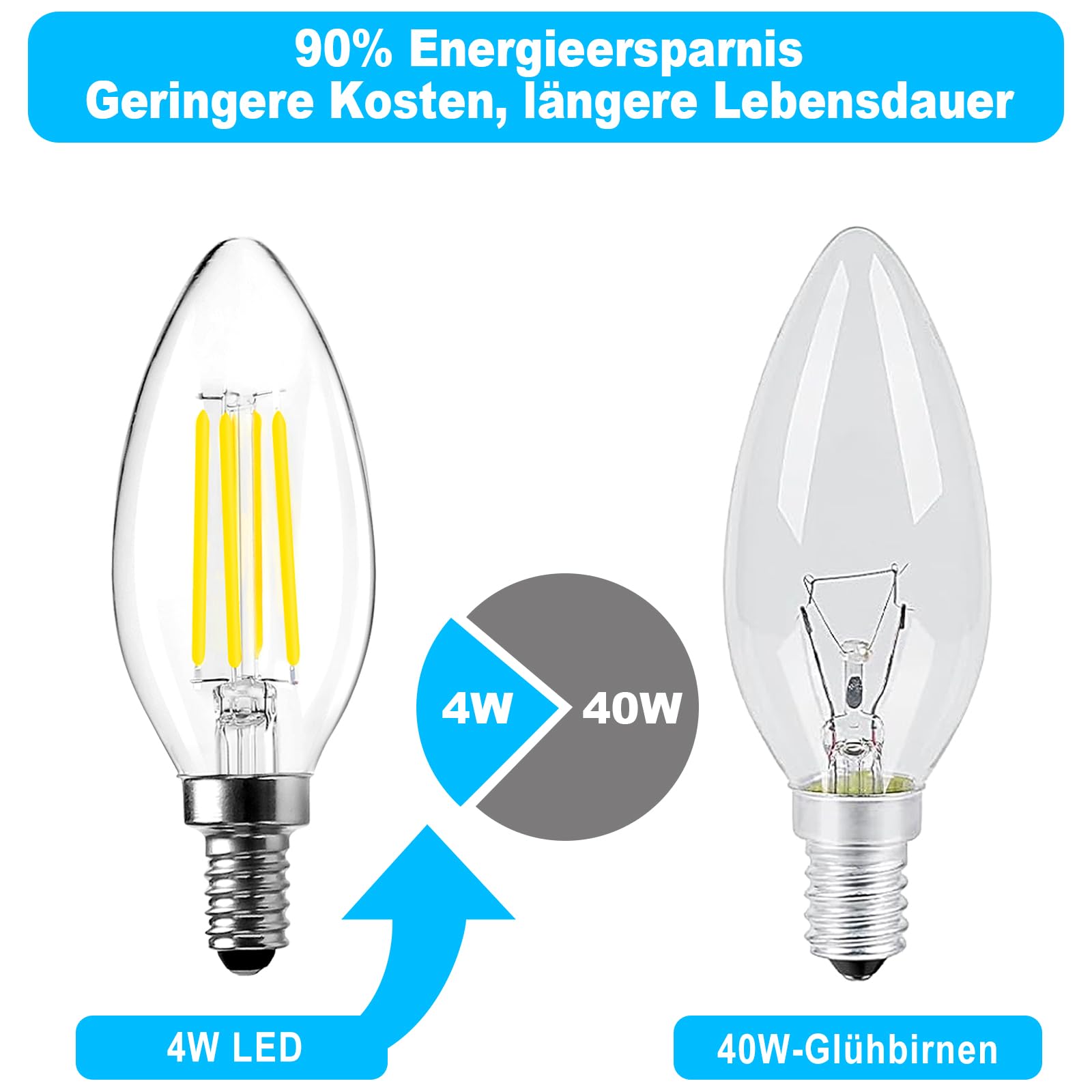 BRIMAX LED Dimmbare Kerzen Glühbirnen, 5000K Kaltweiss, E14 Fassung, 4W ersetzt 40 Watt, 400 Lumen, AC220-240V, Glas Klar Edison Fadenlampe C35 für Kronleuchter Arbeiten Studieren 5 Stück