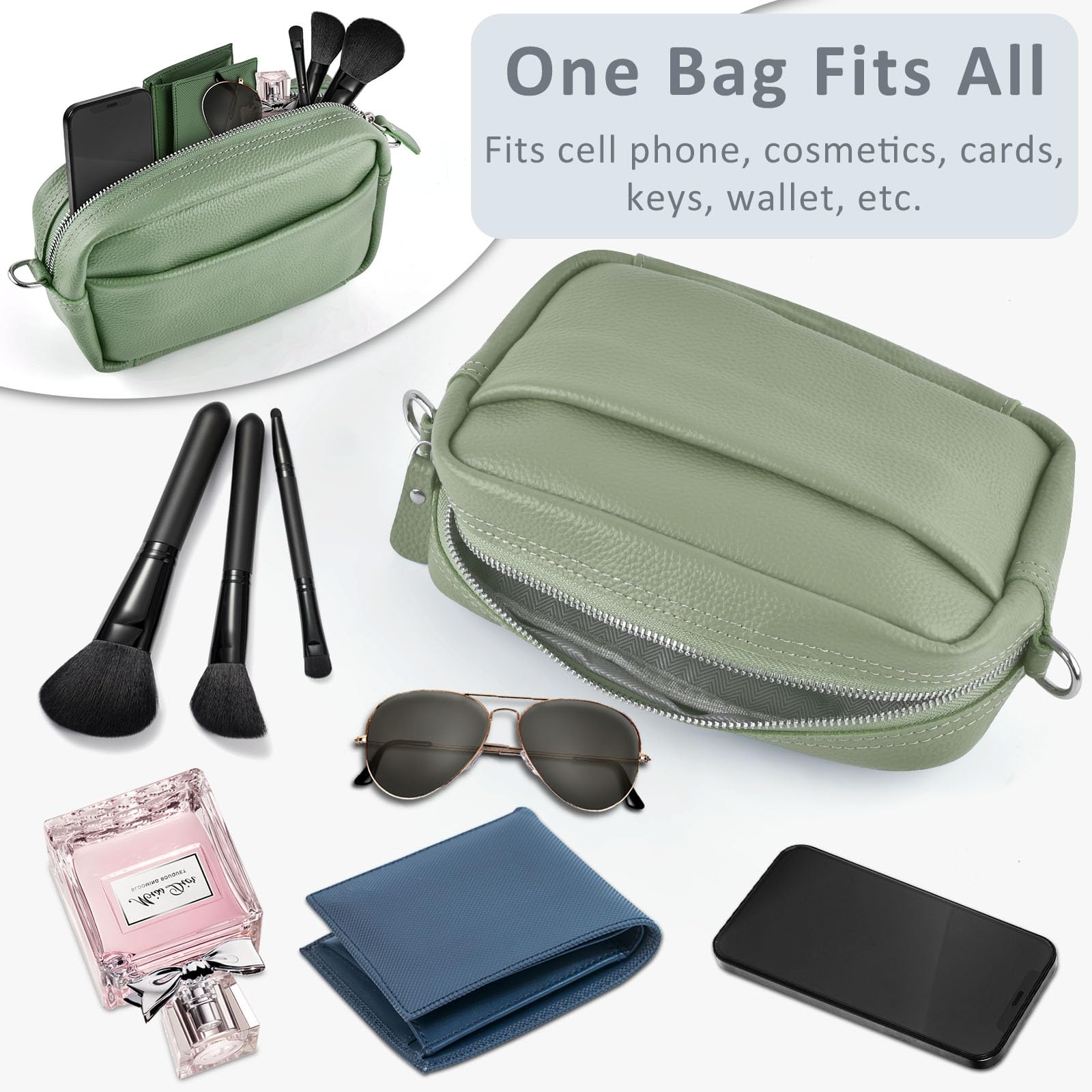 BROTOU Handy Umhängetasche Echtes Leder Crossbody Bag mit 2 Breitem Schultergurt Kartenhalter, Schwarz UmhäNgetasche Damen Leder UmhäNgetasche Damen, Kleine Tasche Damen mit 3 Fächern